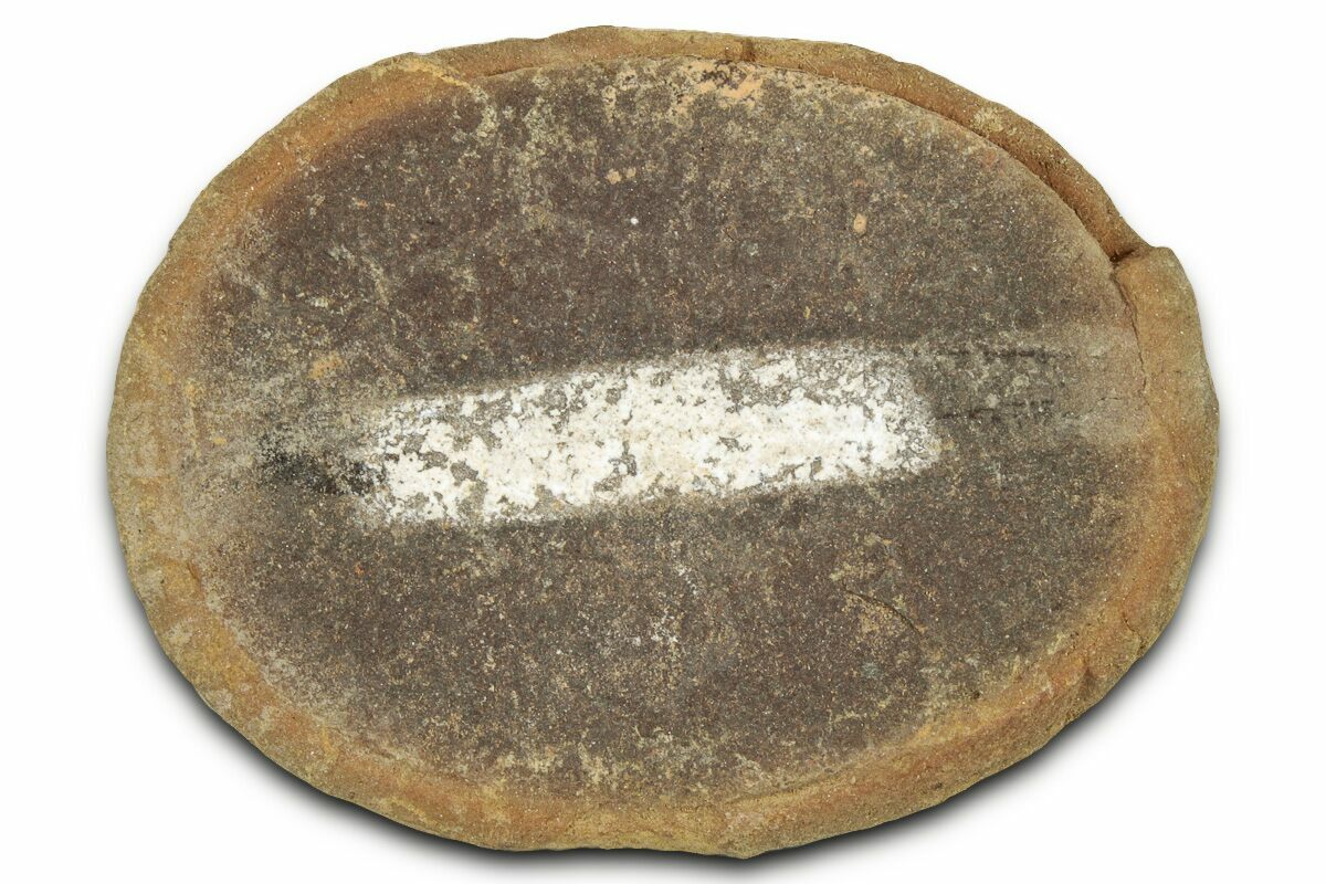 This is a fossil worm preserved inside an ironstone nodule. It comes from the famous Mazon Creek Lagerstätte of Illinois. These ironstone nodules have been collected for decades from the spoil heaps of abandoned coil mines near Coal City, Illinois. The fossil is not quite detailed enough to provide an accurate species.