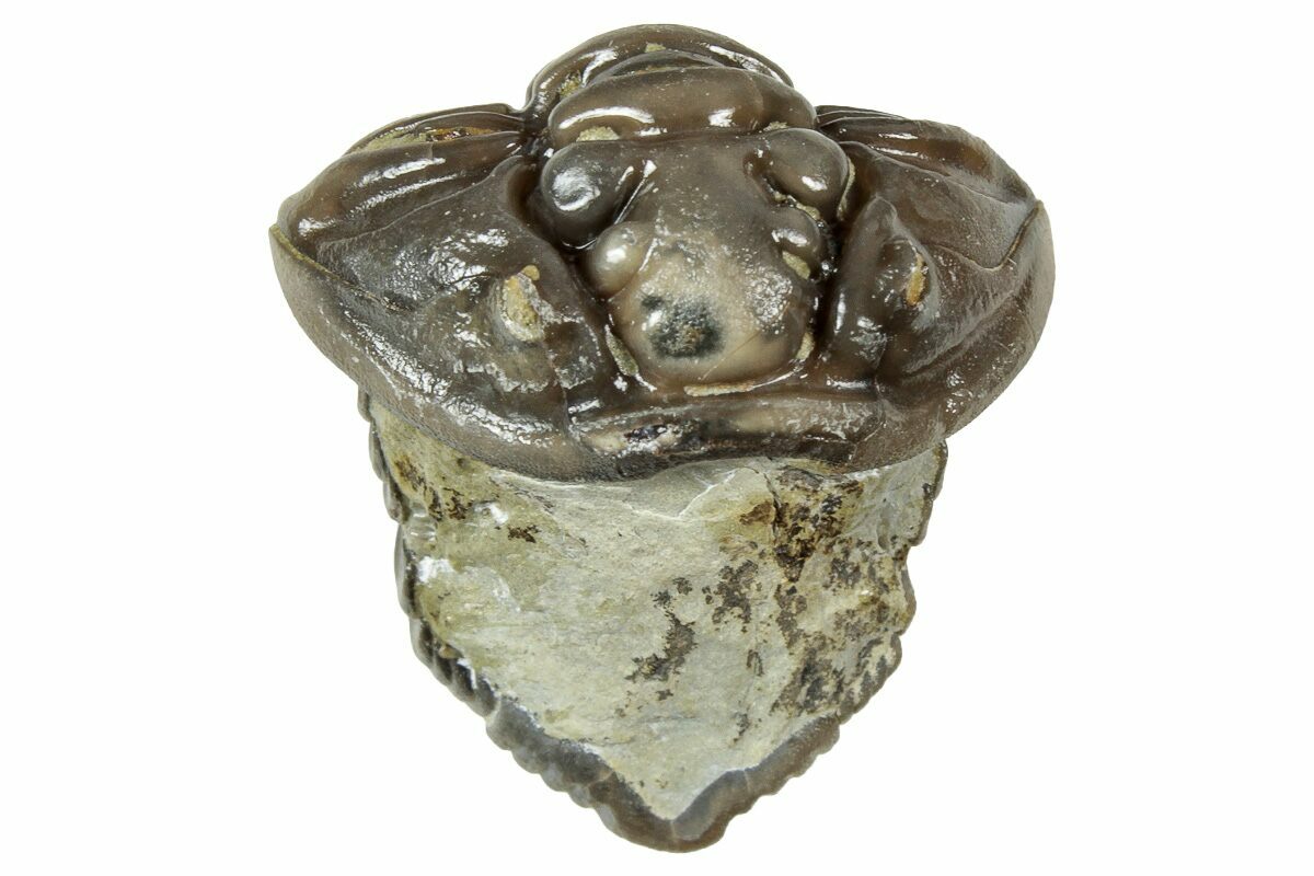 Flexicalymene is often found enrolled, seemingly to protect its softer underside from threats on a sea floor teeming with ancient life and increasingly complex predators. Sealing itself inside the hard carapace may be a protective maneuver, or it may simply be the pose of death.