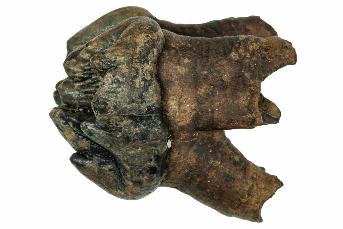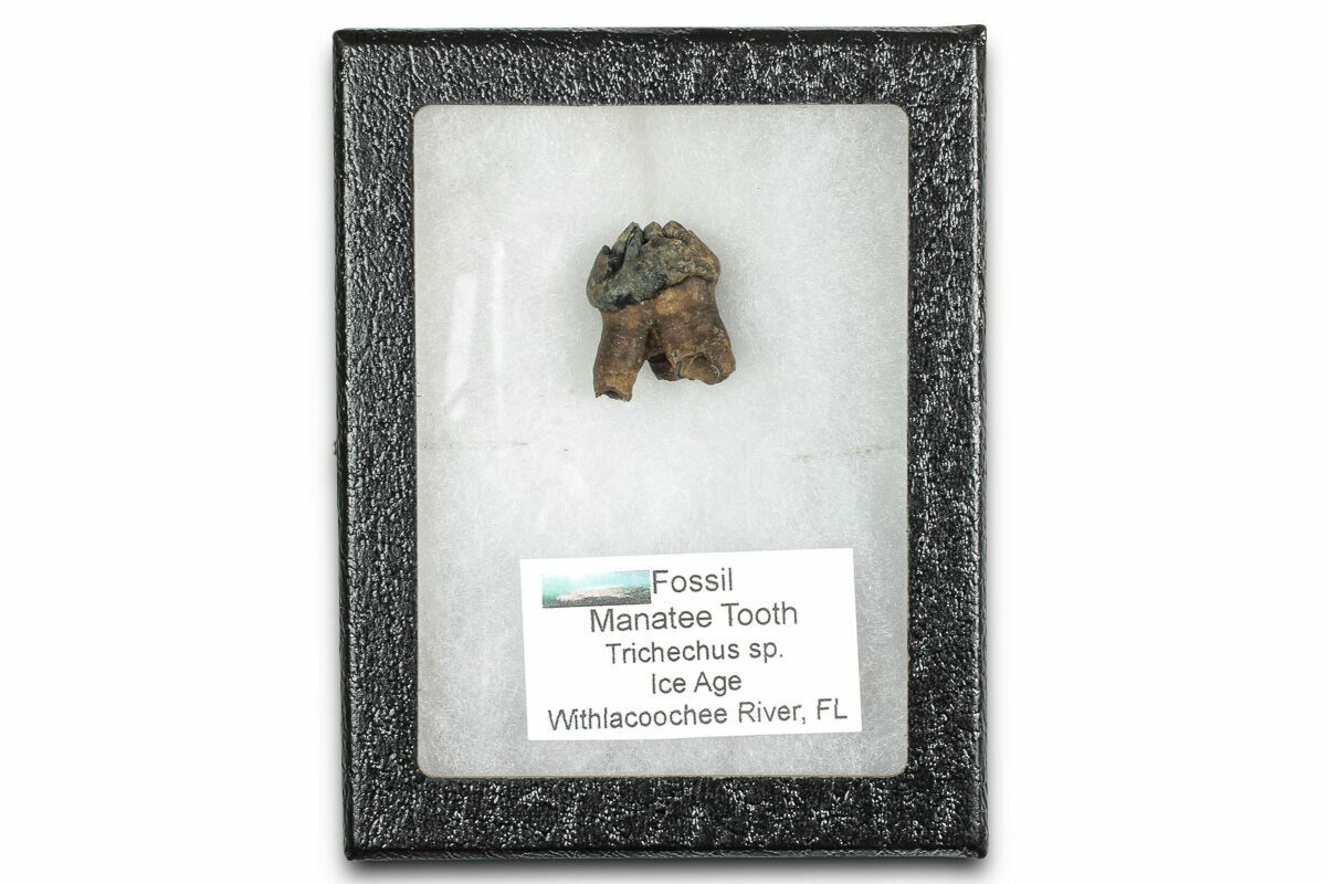 This is a .95" long fossilized manatee tooth collected from a Late Pleistocene-aged deposit in the Withlacoochee River of Florida. It's in great condition with an intact crown and preserved roots.