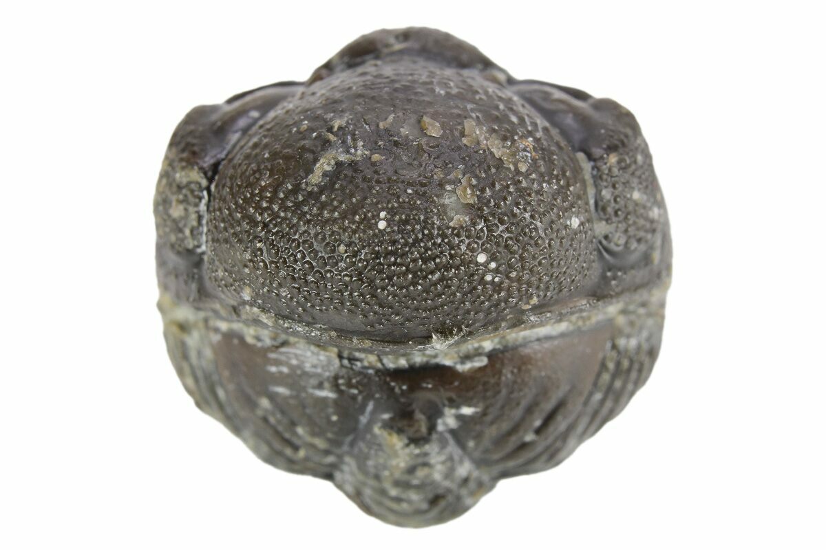 This is an enrolled, .95" wide Austerops trilobite from Issoumour, Morocco.