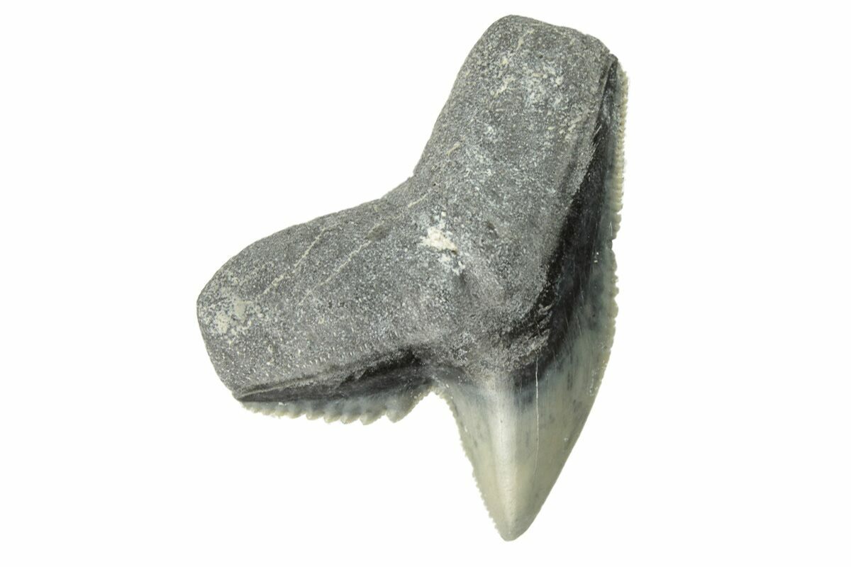The best way to identify Galeocerdo teeth by species is to look at the size of the tooth and the complexity of the serrations. Generally, larger teeth with more complex serrations point to a shark from a time closer to the present. For example, a tooth from G. cuvier is much bigger and more serrated than a tooth from G. aduncus or G. latidens.