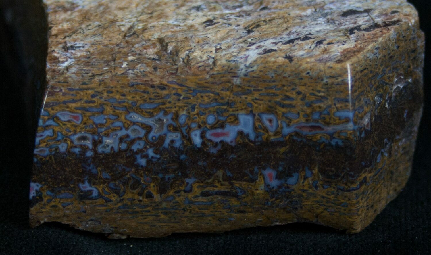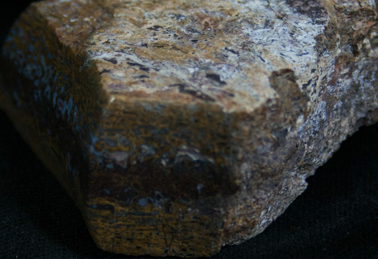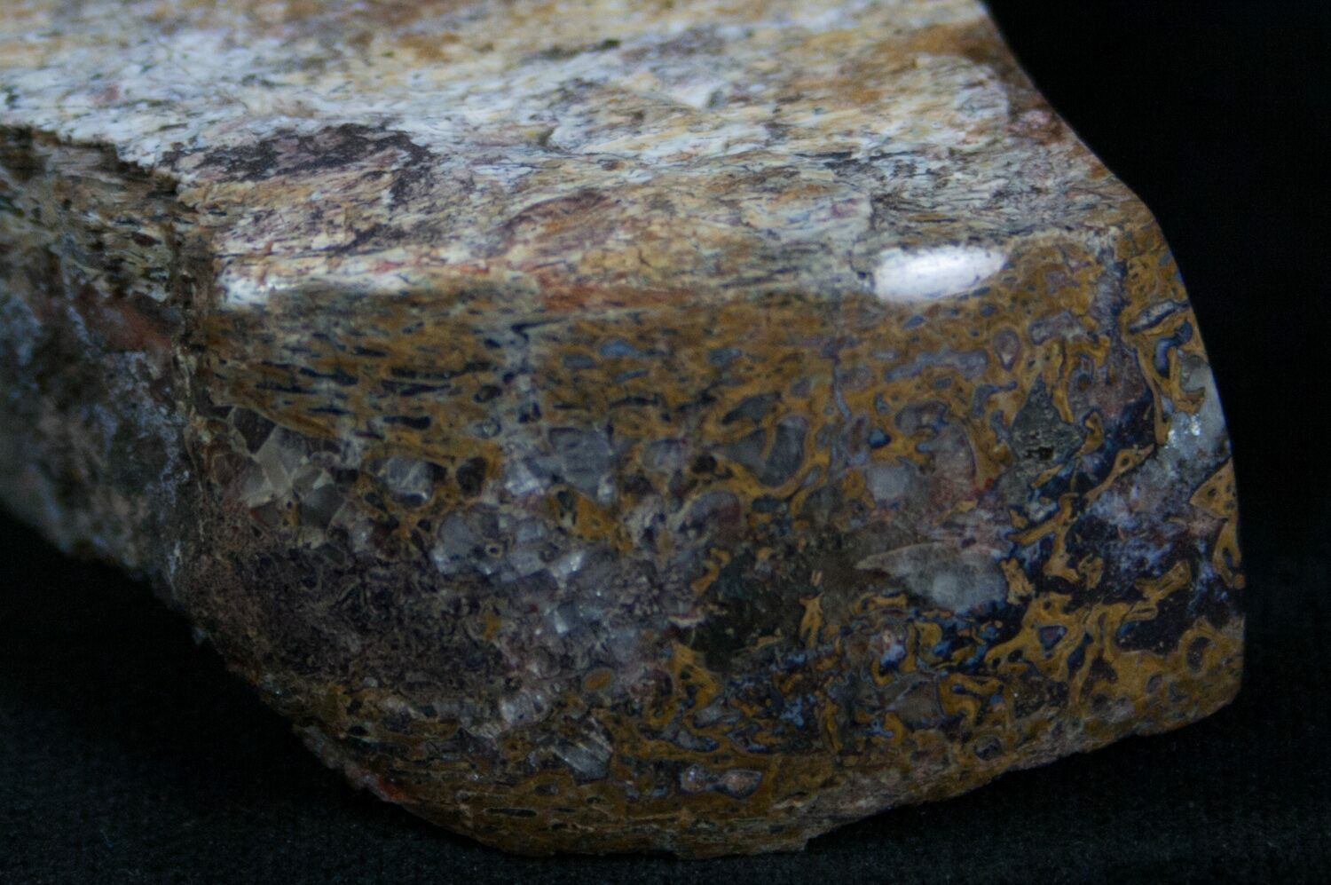 It comes from the Morrison formation of Colorado. The agatized bone is either found as fragments on the surface from bones or partial bones that have long since been destroyed by exposure to the elements, or as broken and tumbled chunks in event layers of the quarry. It could have come from any of a number of dinosaurs from this formation, though sometimes based on cell size and outer appearance the type can be narrowed down.