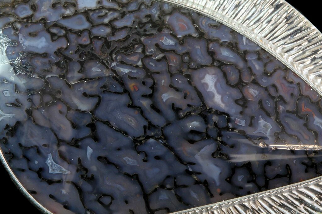 Dinosaur gembone, also known as agatized or fossilized dinosaur bone, is a rare and highly prized material formed when the porous structure of dinosaur bone is replaced by silica-rich minerals such as agate, chalcedony, or jasper over millions of years. This fossilization process preserves the intricate internal cell patterns of the original bone, which are often visible as vibrant, web-like structures under the polished surface.