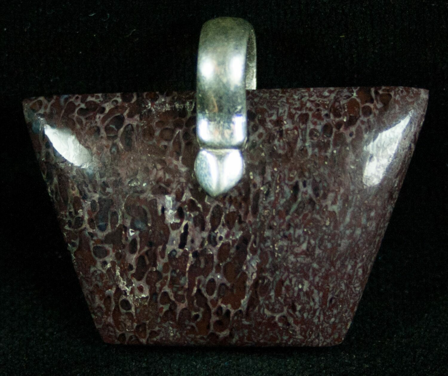 This is a pendant made from 150 million year old, agatized dinosaur bone. The internal cell structure of the dinosaur bone can clearly be seen. Only high grade, gem quality bone was used in the pendants.