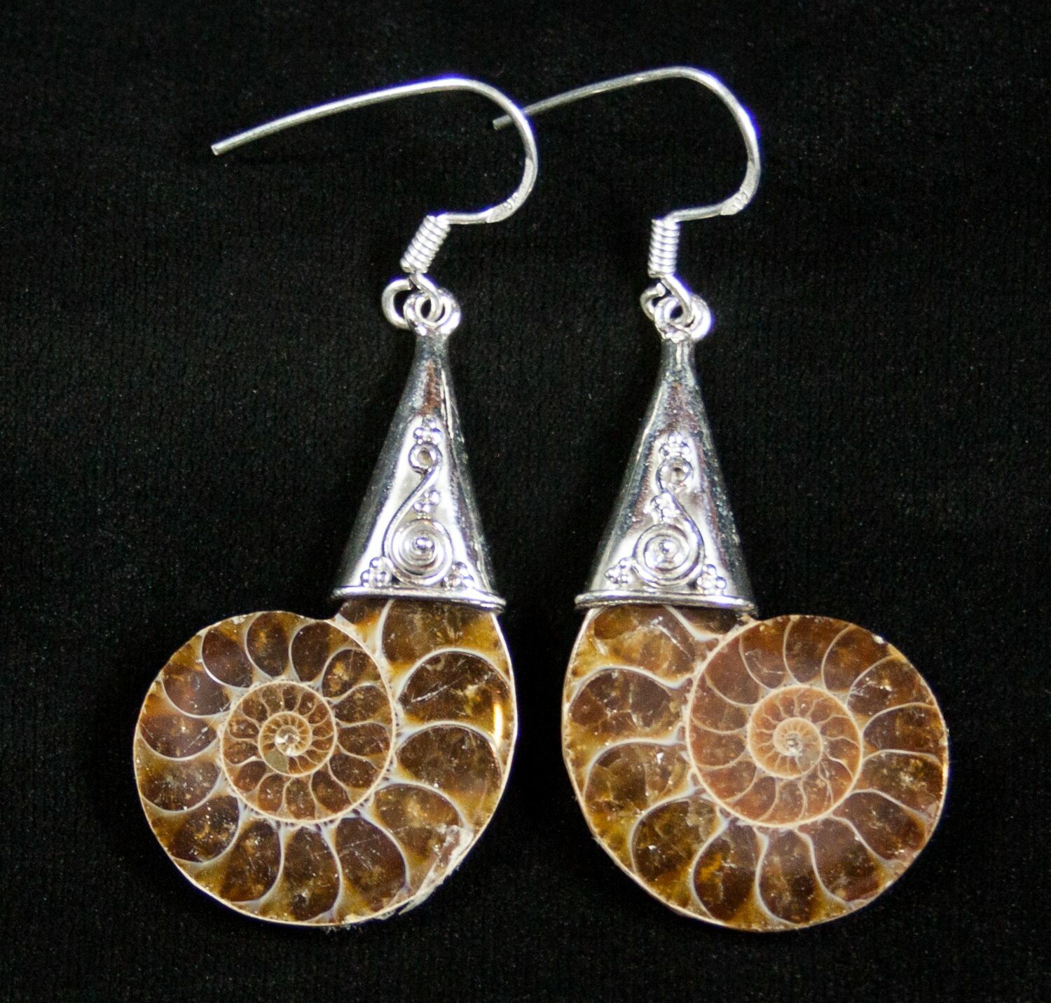 Here is a unique piece of jewelry featuring a real cut and polished ammonite fossil from Madagascar. The 1 inch wide ammonite approximately 110 million years old and from the genus Desmoceras.