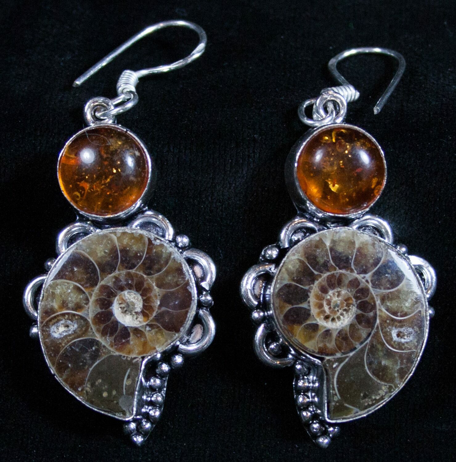 Here is a beautiful and unique piece of jewelry featuring a real cut and polished ammonite fossil from Madagascar. The ammonites are 3/4 of an inch in diameter.