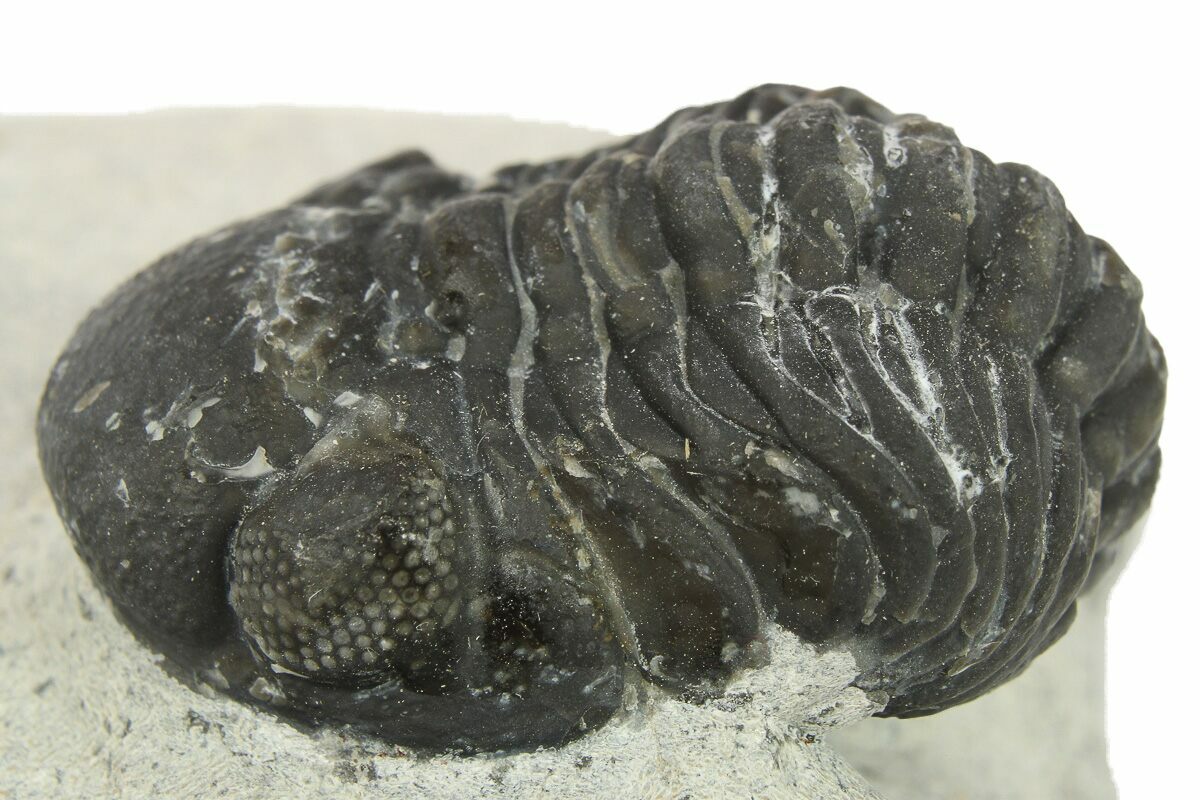 This is a bargain, 1.6" long Austerops trilobite from Ofaten, Morocco. Nice eye facet detail in both eyes.