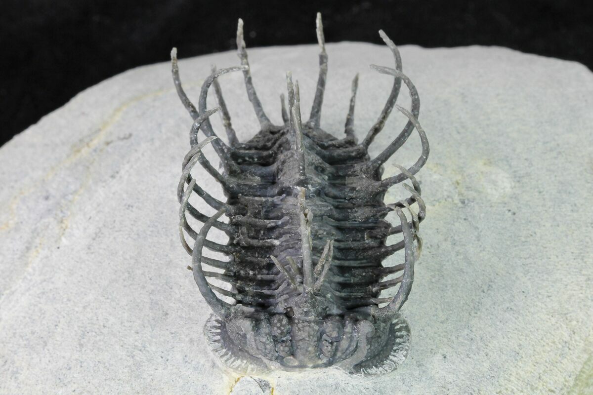 This is a super spiny 1.8" long Koneprusia dahmani trilobite from Ofaten, Morocco. Excellent preparation and shell detail.
