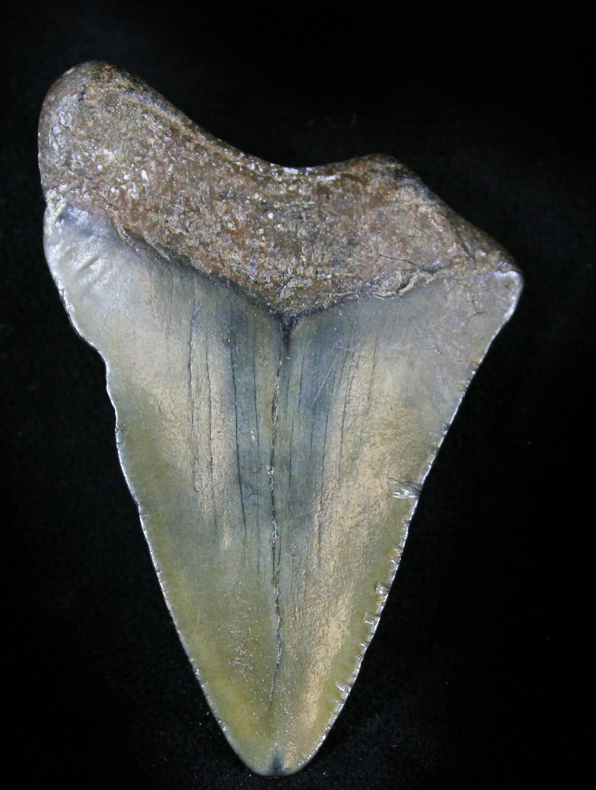 This is a small Megalodon tooth collected in South Carolina. A tooth of this size would have come from a small Megalodon shark.