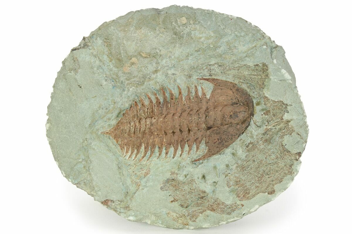 It is bargain priced the entire trilobite has been colored orange so that it better stand out from the rock. Naturally the trilobites are almost the same color as the surrounding shale.