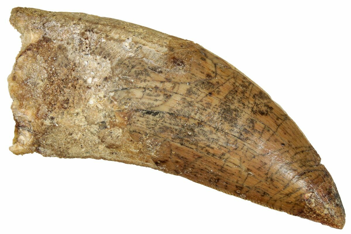 This is a 2.73" long tooth of a Carcharodontosaurus from the Late Cretaceous, Kem Kem Beds of Morocco. Carcharodontosaurus was a massive predatory dinosaur larger than Tyrannosaurus rex.