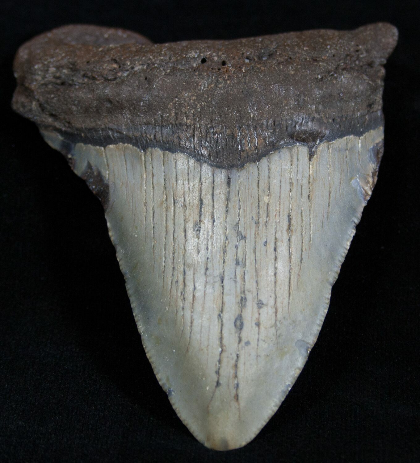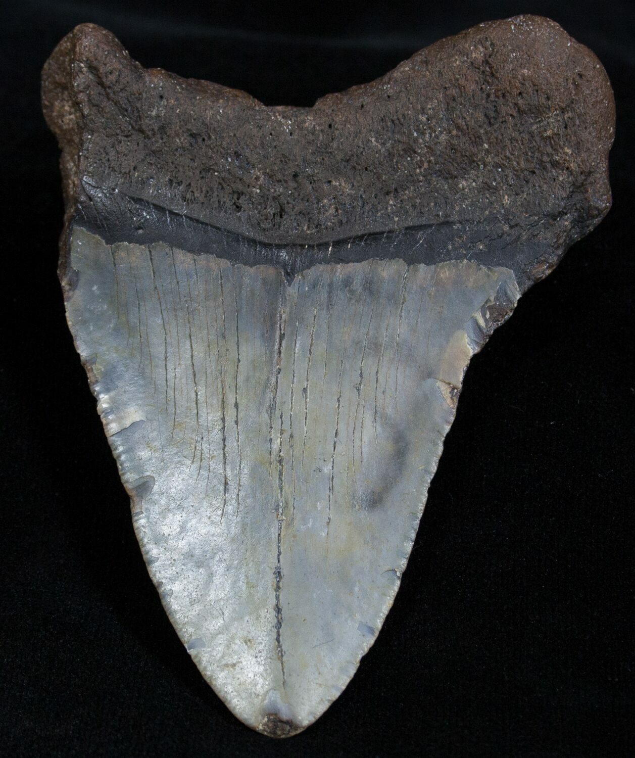The standard measure for megalodon teeth is slant height, or the longest edge of the tooth. Adult megalodon teeth were typically in the 4 to 5 inch range: teeth over 6 inches are rare and represent super-sized individuals. Only a handful of teeth have ever been found over seven inches.