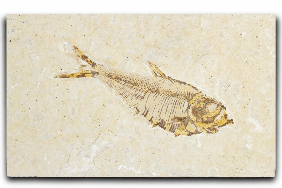 Today the wonderfully preserved fossils of Diplomystus and other Fossil Lake fauna are collected in several private quarries around Kemmerer, Wyoming. The best preserved fish fossils come from the coveted 18 Inch Layer. This layer is collected at night under high-powered lights, enhancing the faint signs of fish under the surface indicating underlying fossils. These “ghosted” fish then must go through many hours of manual preparation to remove the overlying rock and reveal the Green River fauna in all of its glory.