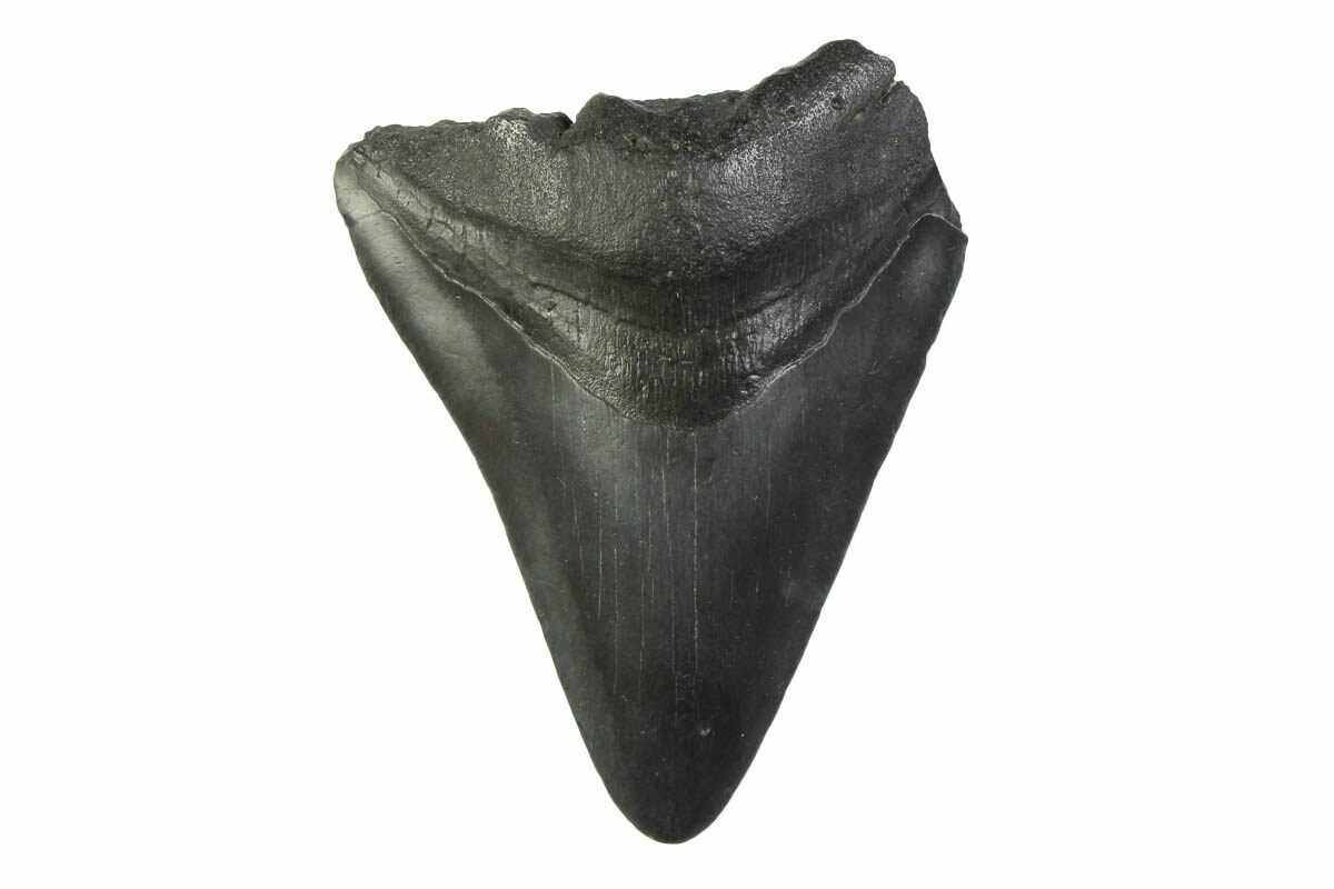 Megalodon had a cosmopolitan (global) distribution and its giant teeth can be found in deposits throughout the world. Some are collected on land in phosphate deposits, while many are collected from rivers and coastlines after eroding out of the rocks. This contributes to the water-worn, polished appearance of many teeth.