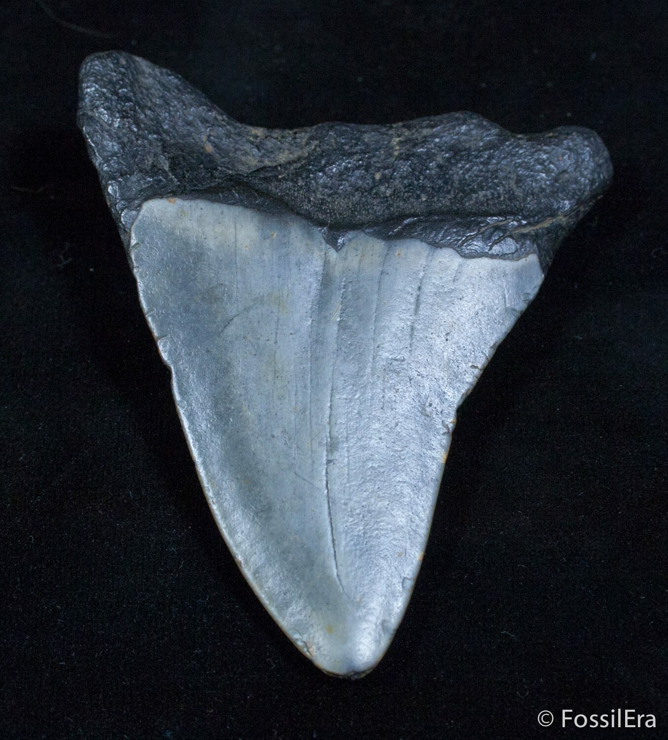 The standard measure for megalodon teeth is slant height, or the longest edge of the tooth. Adult megalodon teeth were typically in the 4 to 5 inch range: teeth over 6 inches are rare and represent super-sized individuals. Only a handful of teeth have ever been found over seven inches.