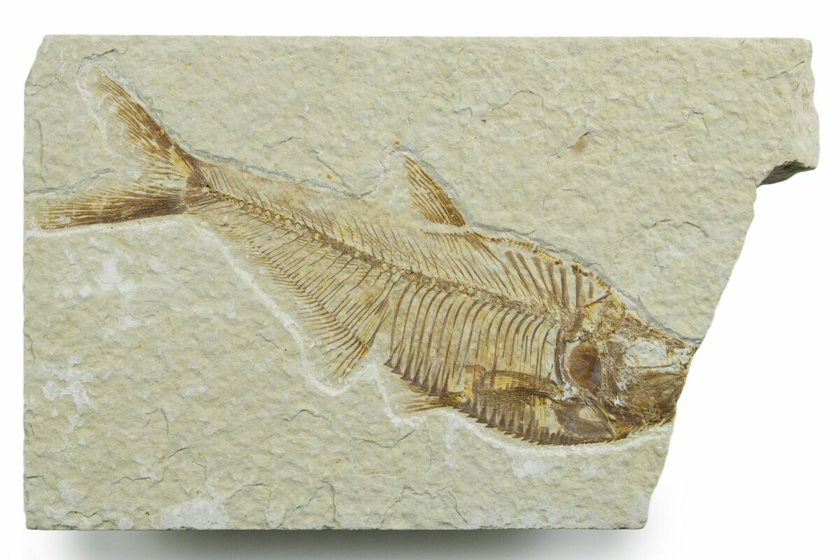 Today the wonderfully preserved fossils of Diplomystus and other Fossil Lake fauna are collected in several private quarries around Kemmerer, Wyoming. The best preserved fish fossils come from the coveted 18 Inch Layer. This layer is collected at night under high-powered lights, enhancing the faint signs of fish under the surface indicating underlying fossils. These “ghosted” fish then must go through many hours of manual preparation to remove the overlying rock and reveal the Green River fauna in all of its glory.