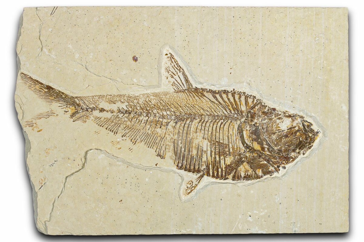 Today the wonderfully preserved fossils of Diplomystus and other Fossil Lake fauna are collected in several private quarries around Kemmerer, Wyoming. The best preserved fish fossils come from the coveted 18 Inch Layer. This layer is collected at night under high-powered lights, enhancing the faint signs of fish under the surface indicating underlying fossils. These “ghosted” fish then must go through many hours of manual preparation to remove the overlying rock and reveal the Green River fauna in all of its glory.