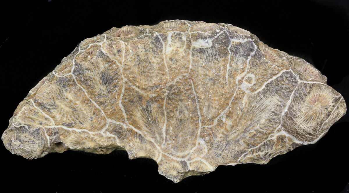 This is a beautiful piece of fossil coral collected near Assa Zag, Morocco in the Western Sahara. It is Early Pennsylvanian in age, or approximately 320 million years old. The polishing shows off the beautiful inner structure of the coral colony beautifully. It looks very similar to the fossil coral "Petoskey stones" found in Michigan, though these are a different genus of coral.