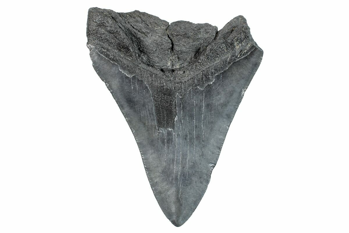 Megalodon had a cosmopolitan (global) distribution and its giant teeth can be found in deposits throughout the world. Some are collected on land in phosphate deposits, while many are collected from rivers and coastlines after eroding out of the rocks. This contributes to the water-worn, polished appearance of many teeth.
