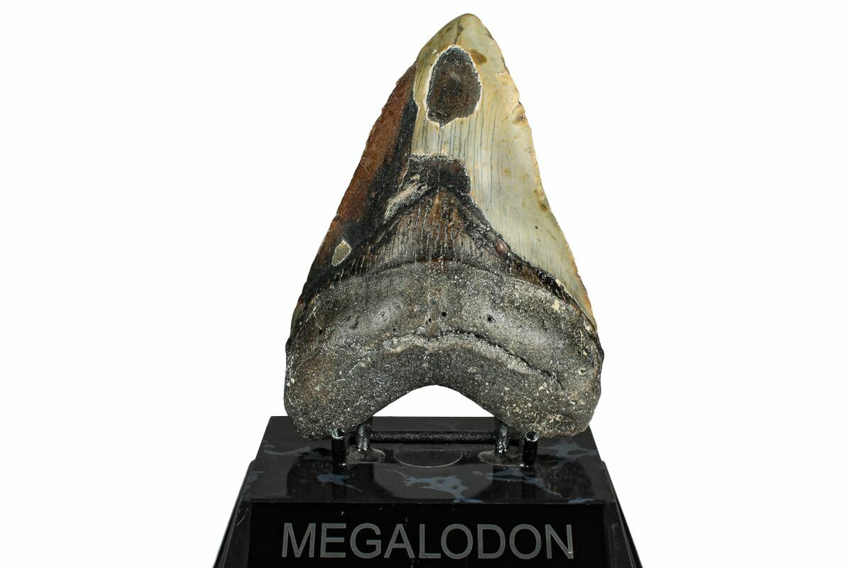 Megalodon had a cosmopolitan (global) distribution and its giant teeth can be found in deposits throughout the world. Some are collected on land in phosphate deposits, while many are collected from rivers and coastlines after eroding out of the rocks. This contributes to the water-worn, polished appearance of many teeth.