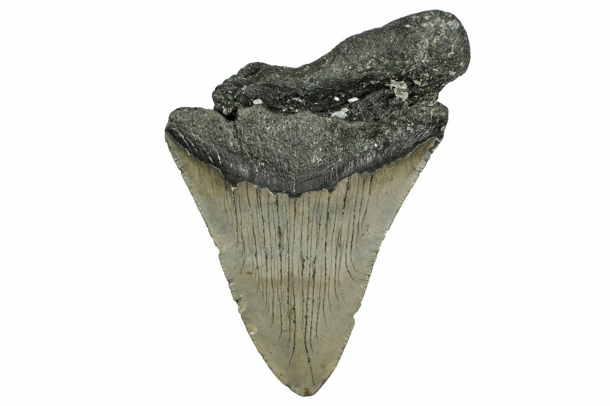 Bargain, 5.15" Fossil Megalodon Tooth - Serrated Blade