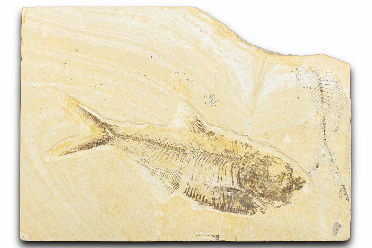 Today the wonderfully preserved fossils of Diplomystus and other Fossil Lake fauna are collected in several private quarries around Kemmerer, Wyoming. The best preserved fish fossils come from the coveted 18 Inch Layer. This layer is collected at night under high-powered lights, enhancing the faint signs of fish under the surface indicating underlying fossils. These “ghosted” fish then must go through many hours of manual preparation to remove the overlying rock and reveal the Green River fauna in all of its glory.