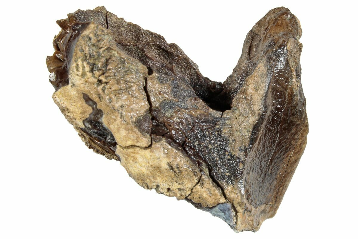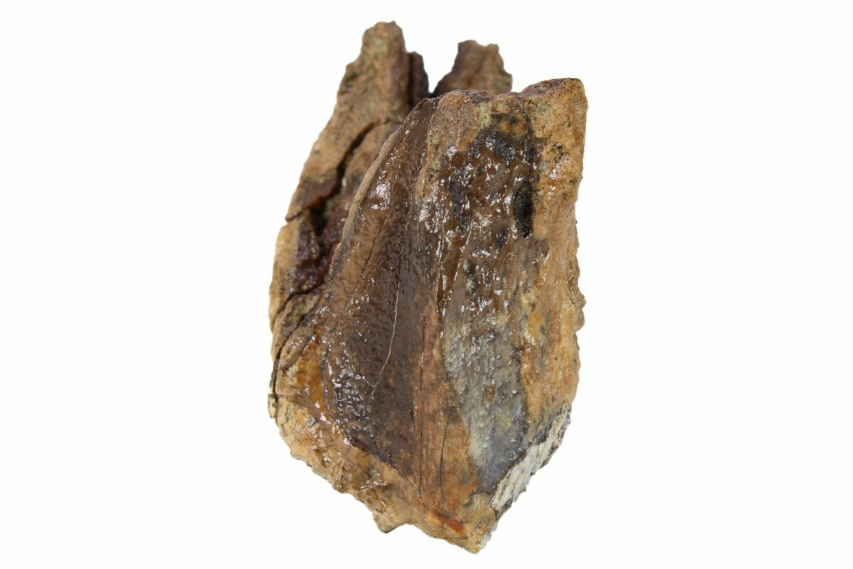 This is an enormous, 1.79" long rooted Triceratops horridus tooth. It was collected from the Hell Creek Formation in Garfield County, Montana. Triceratops is one of the most iconic dinosaurs, recognizable by almost everyone. The vast majority of teeth found are worn teeth that are discarded during the dinosaur's lifetime. This tooth has a nearly complete root, making it a much more uncommon find.