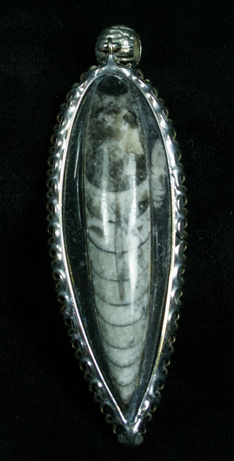 This is a beautiful handcrafted pendant featuring a real, polished, 400 million year old Orthoceras fossil from Morocco.