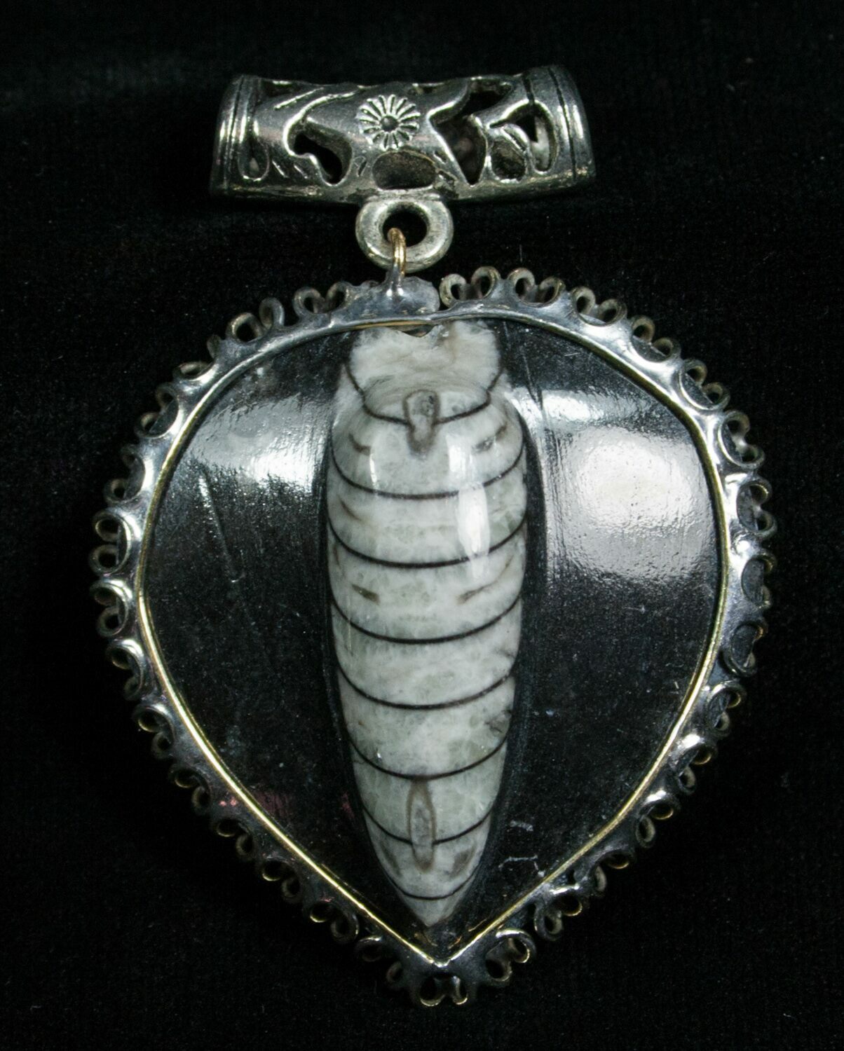 Black Heart Fossil Orthoceras Pendant
