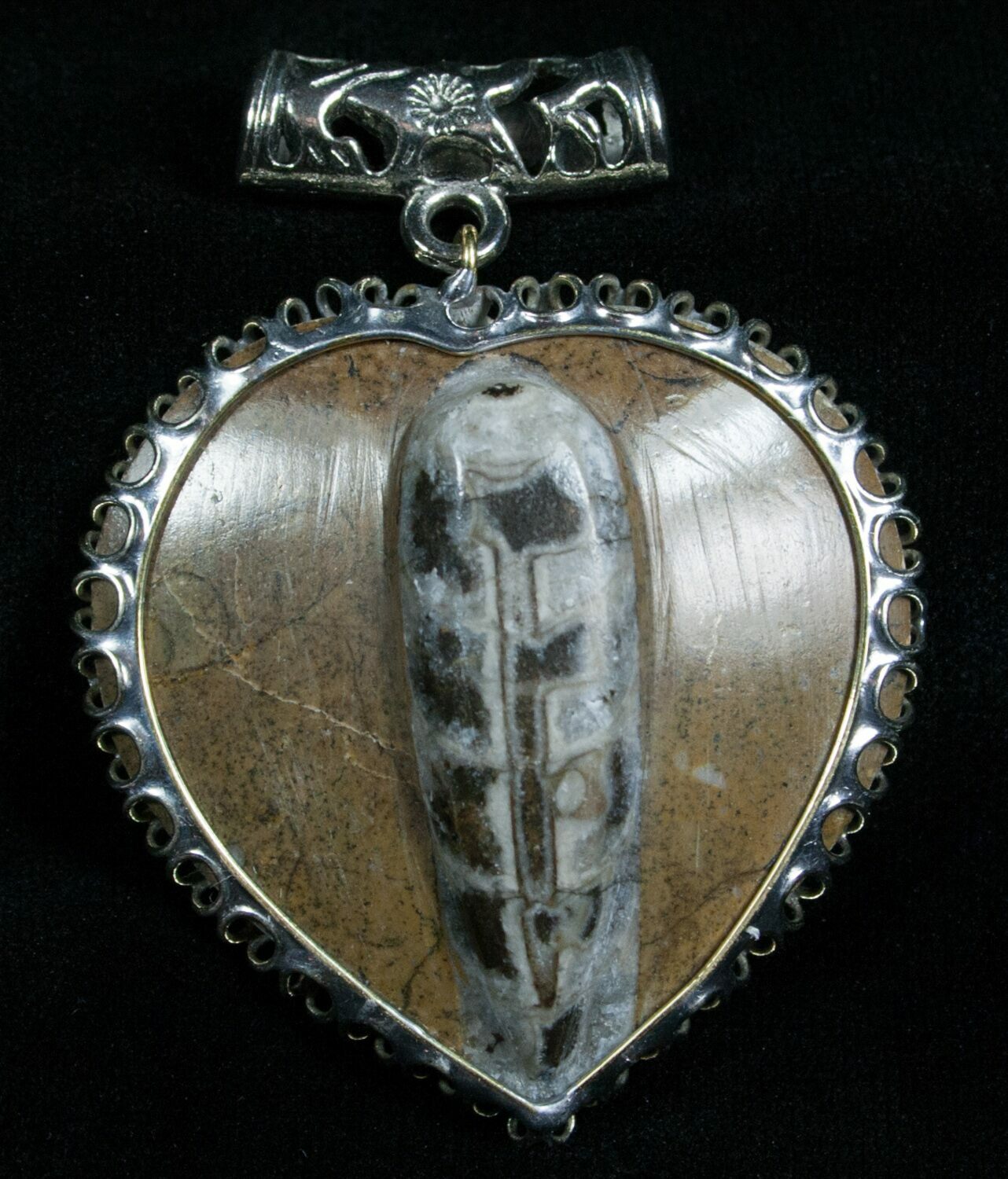 This is a beautiful handcrafted pendant featuring a real, polished, 400 million year old Orthoceras fossil from Morocco.