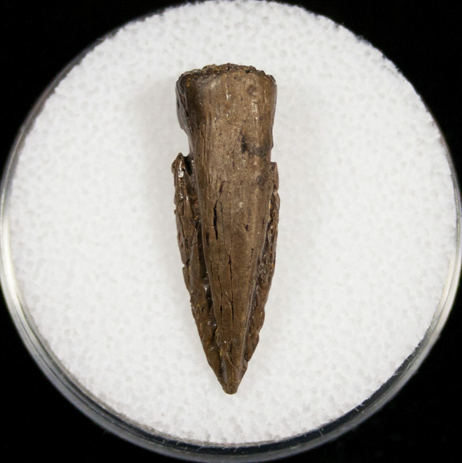This is a claw of Leidyosuchus formidabilis, a 66 million year old crocodilian. It comes from the Hell Creek Formation which is so famous for producing fossils of T-Rex, Triceratops and Hadrosaurs. It was collection from private land in Powder River County, Montana. The claw is 1" long with no repair or restoration. Comes in an acrylic case.