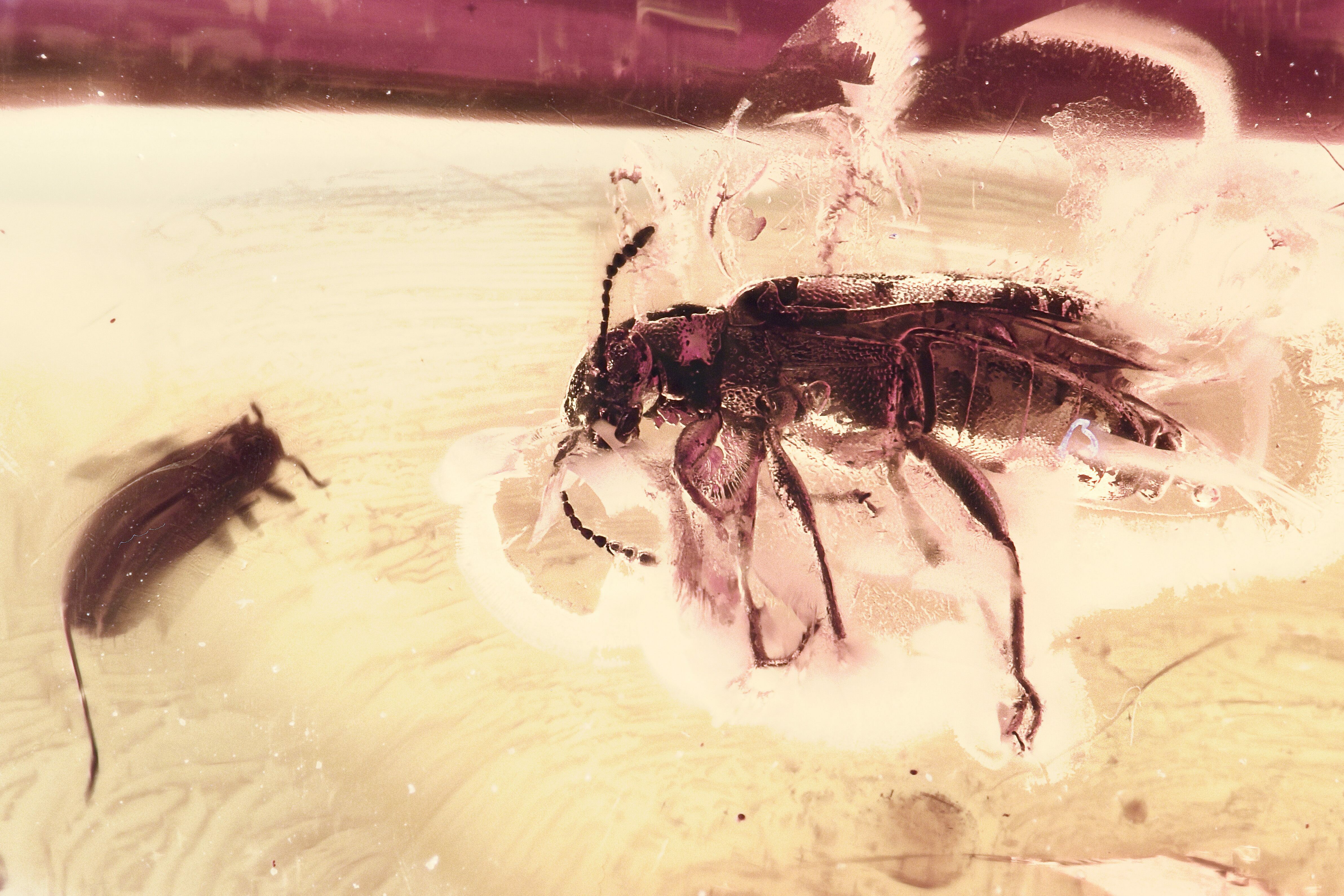 Detailed Fossil Beetle and Spiny Aphid Nymph in Baltic Amber