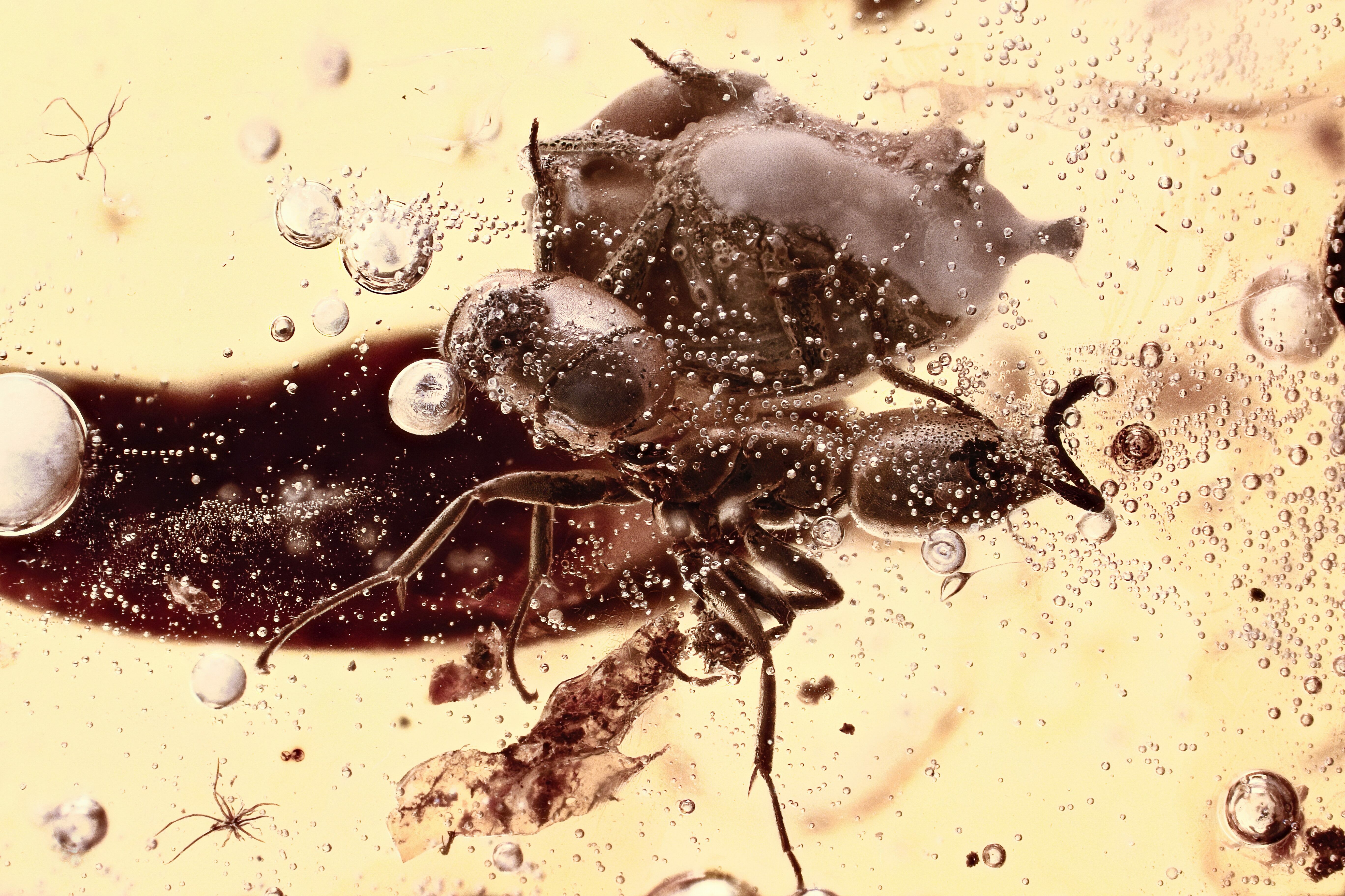 Detailed Fossil Beetle and Two Ants in Baltic Amber
