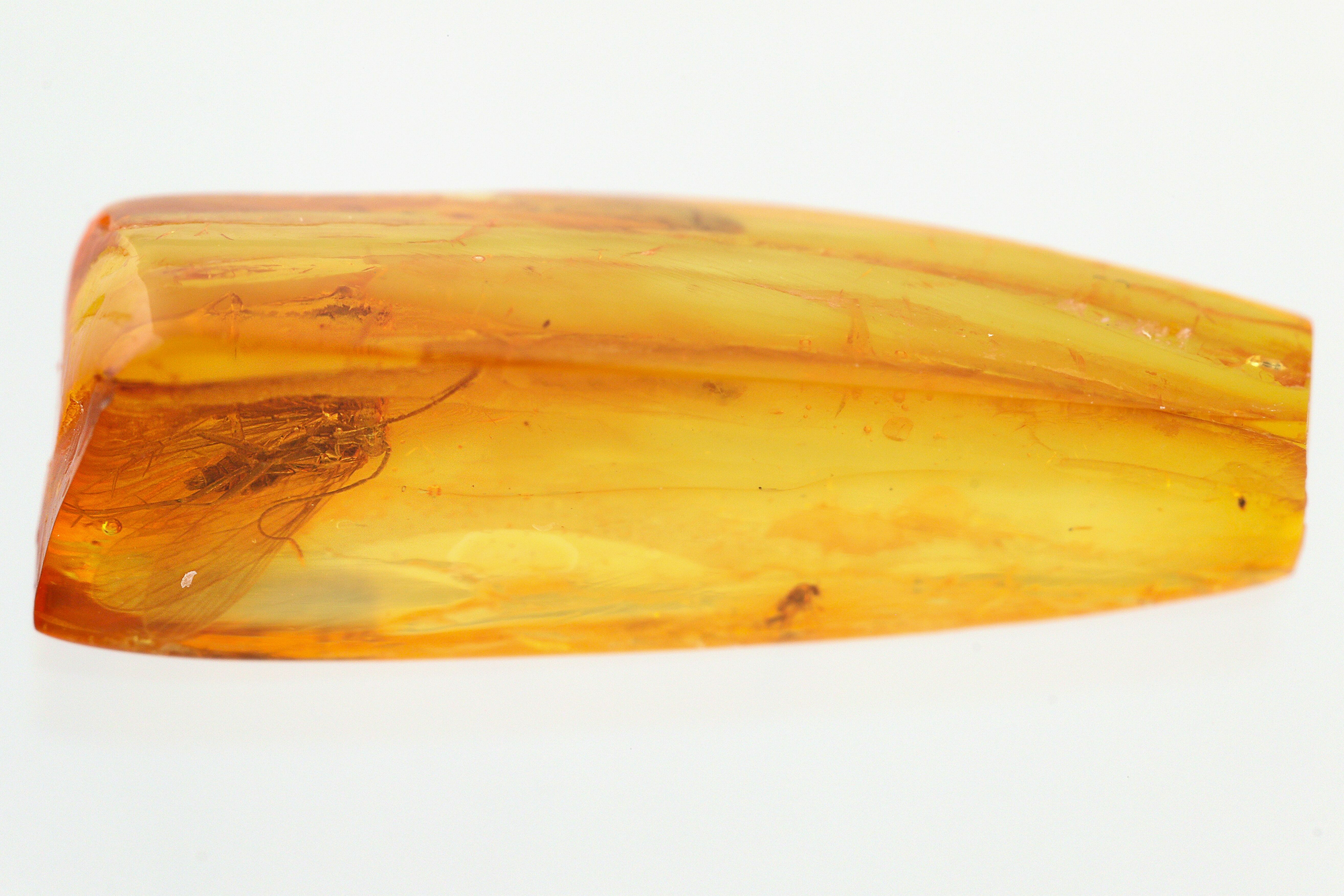 About 5.9mm caddisfly, 17 x 6 x 5mm amber