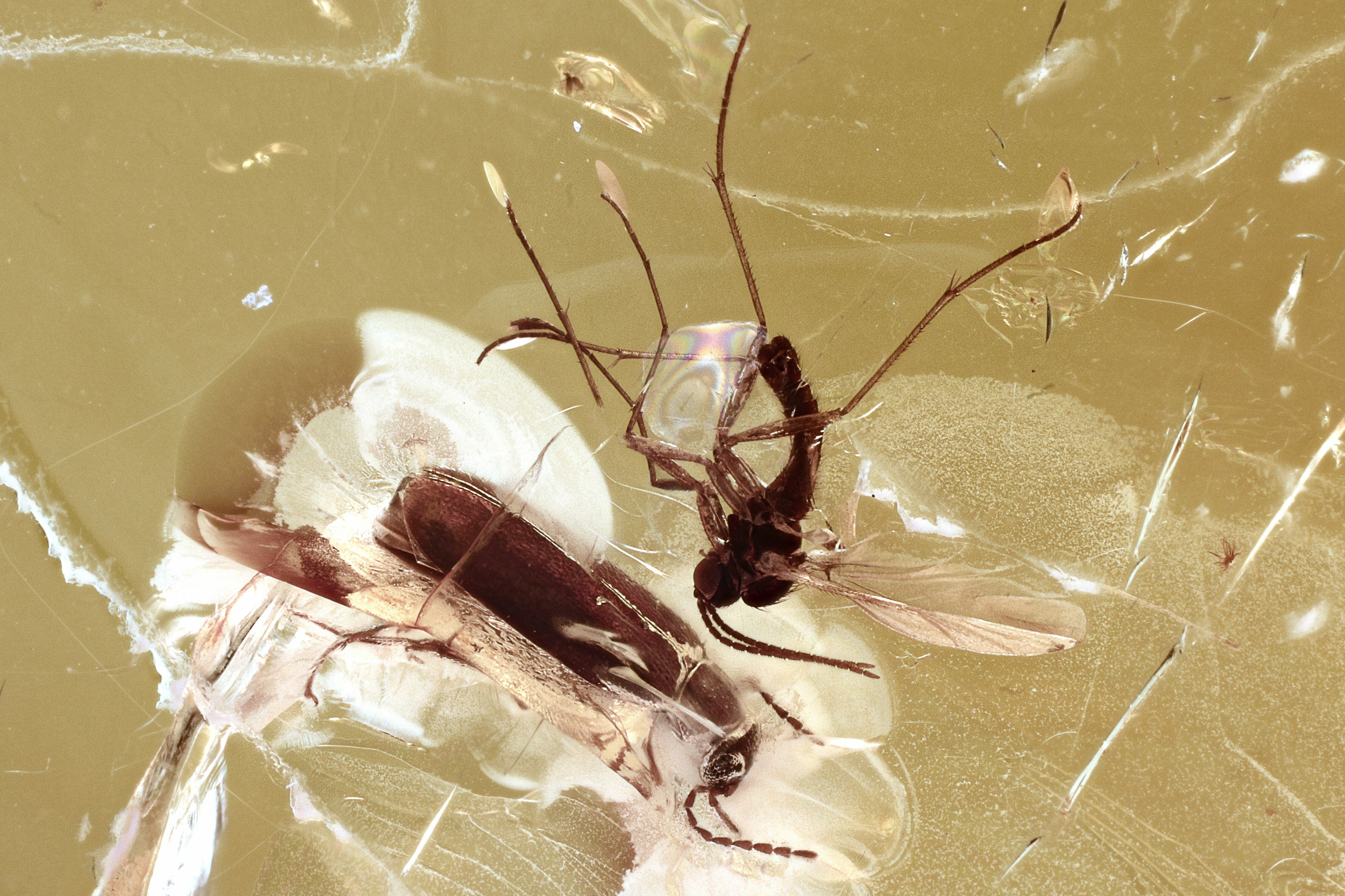 Detailed Fossil False Flower Beetle and Fungus Gnat in Baltic Amber