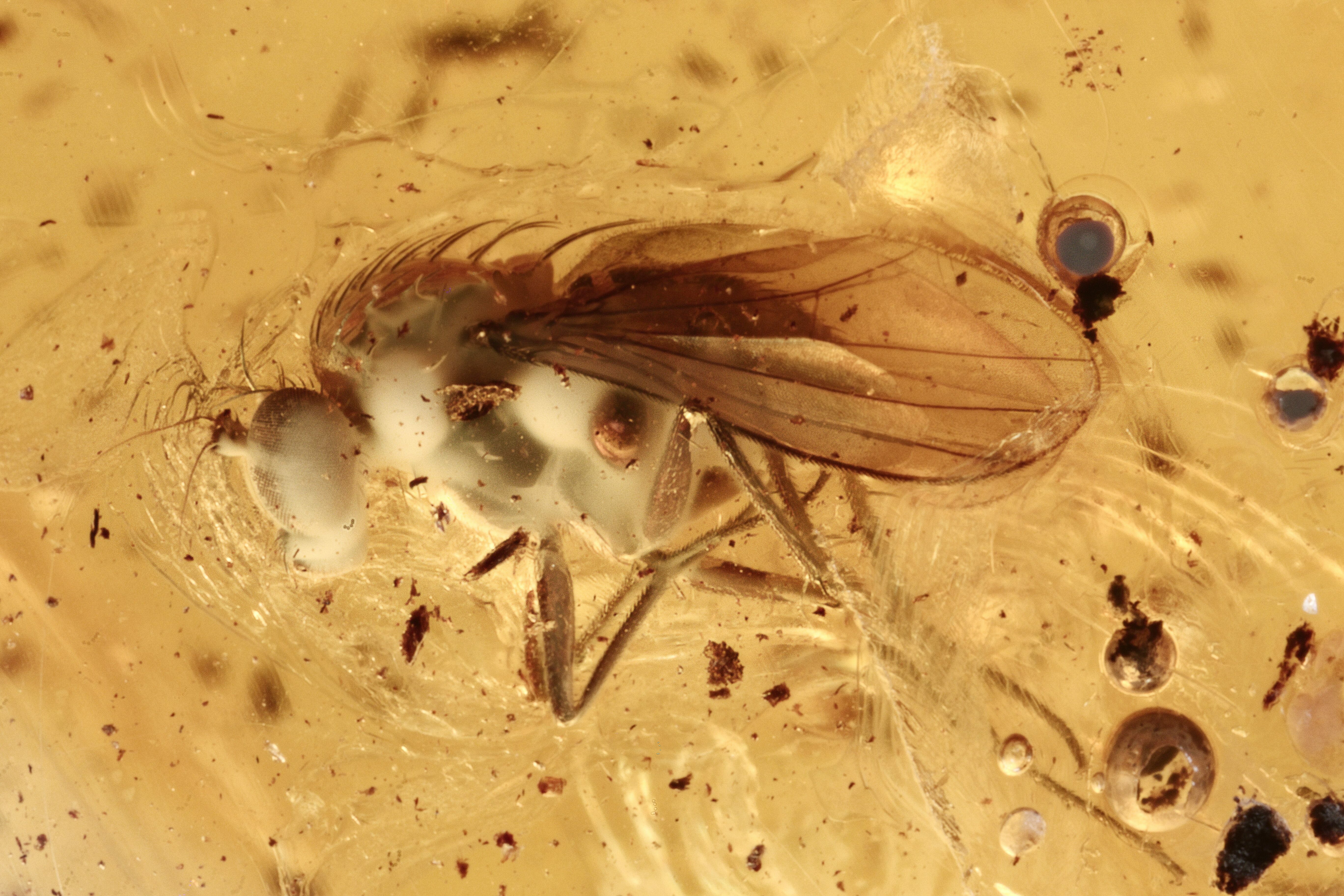 Detailed Fossil Fly and Parasitic Wasp in Baltic Amber