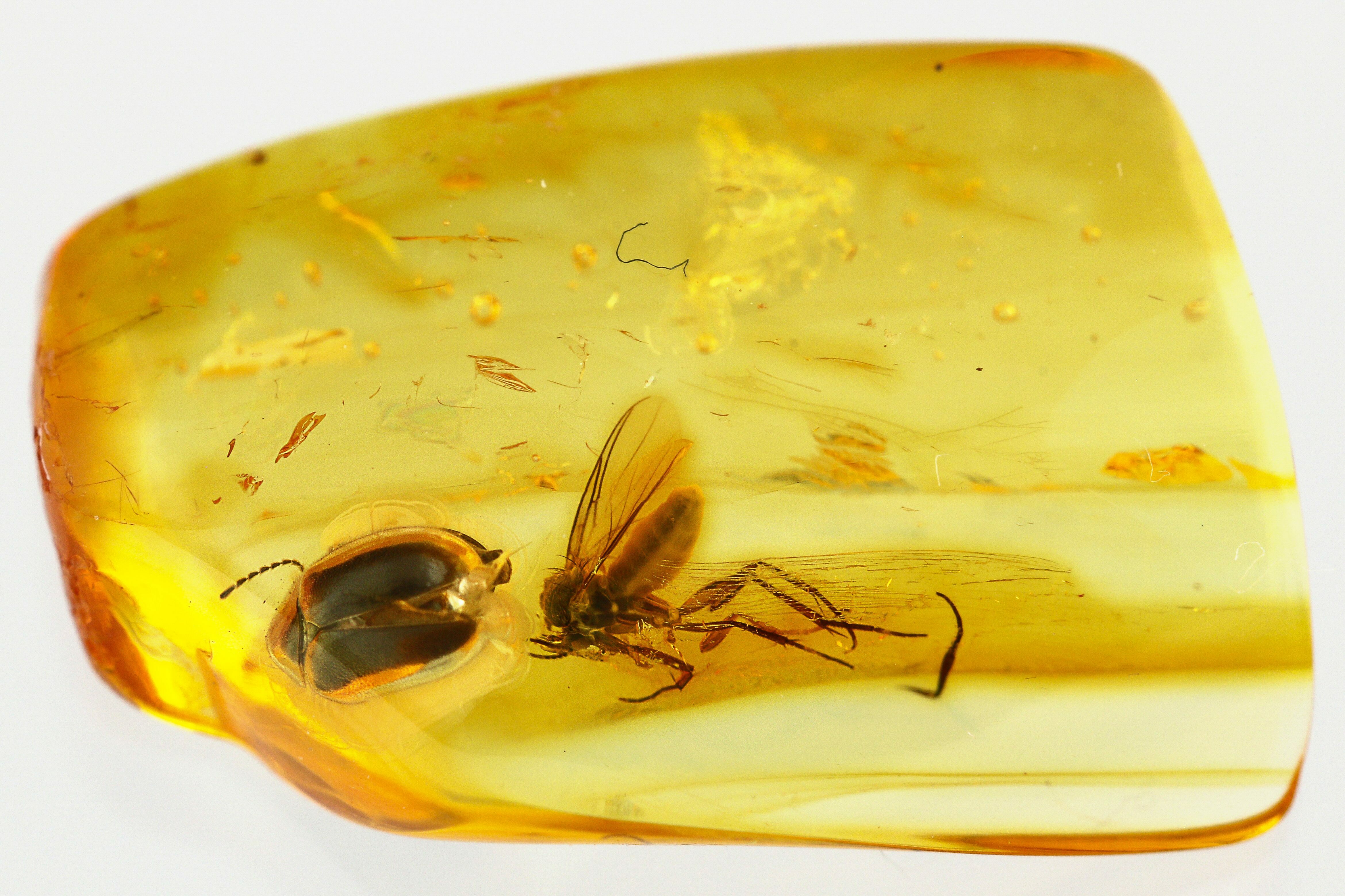 Buyer Beware: The market is flooded with fake amber, which is often plastics with insects embedded in it. The insect inclusions in amber are almost always tiny. Larger insects are able to struggle free and are not preserved. If you see something that looks too good to be true, it often is. Make sure to buy from a reputable dealer.