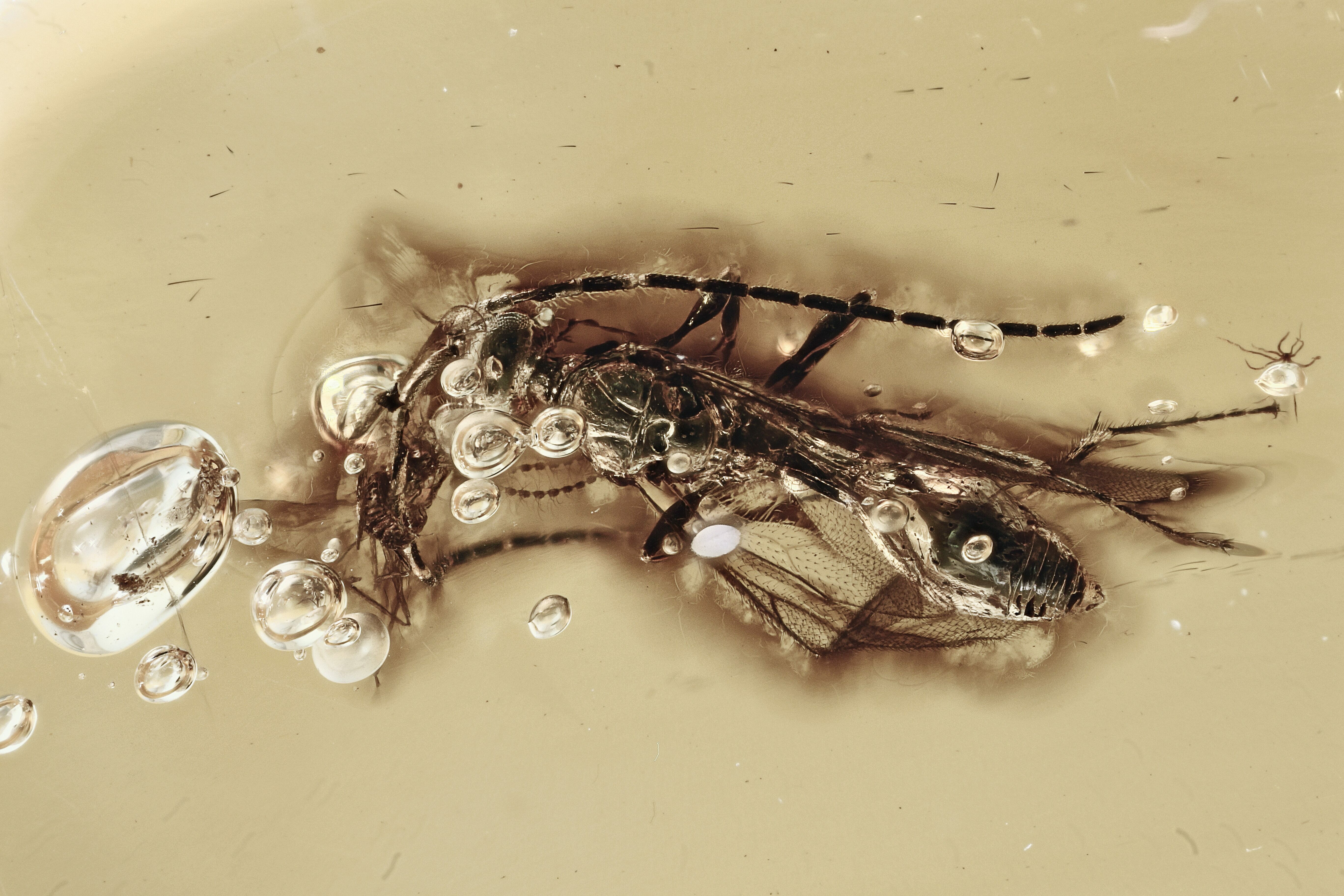 Detailed Fossil Parasitoid Wasp and Gall Midge in Baltic Amber