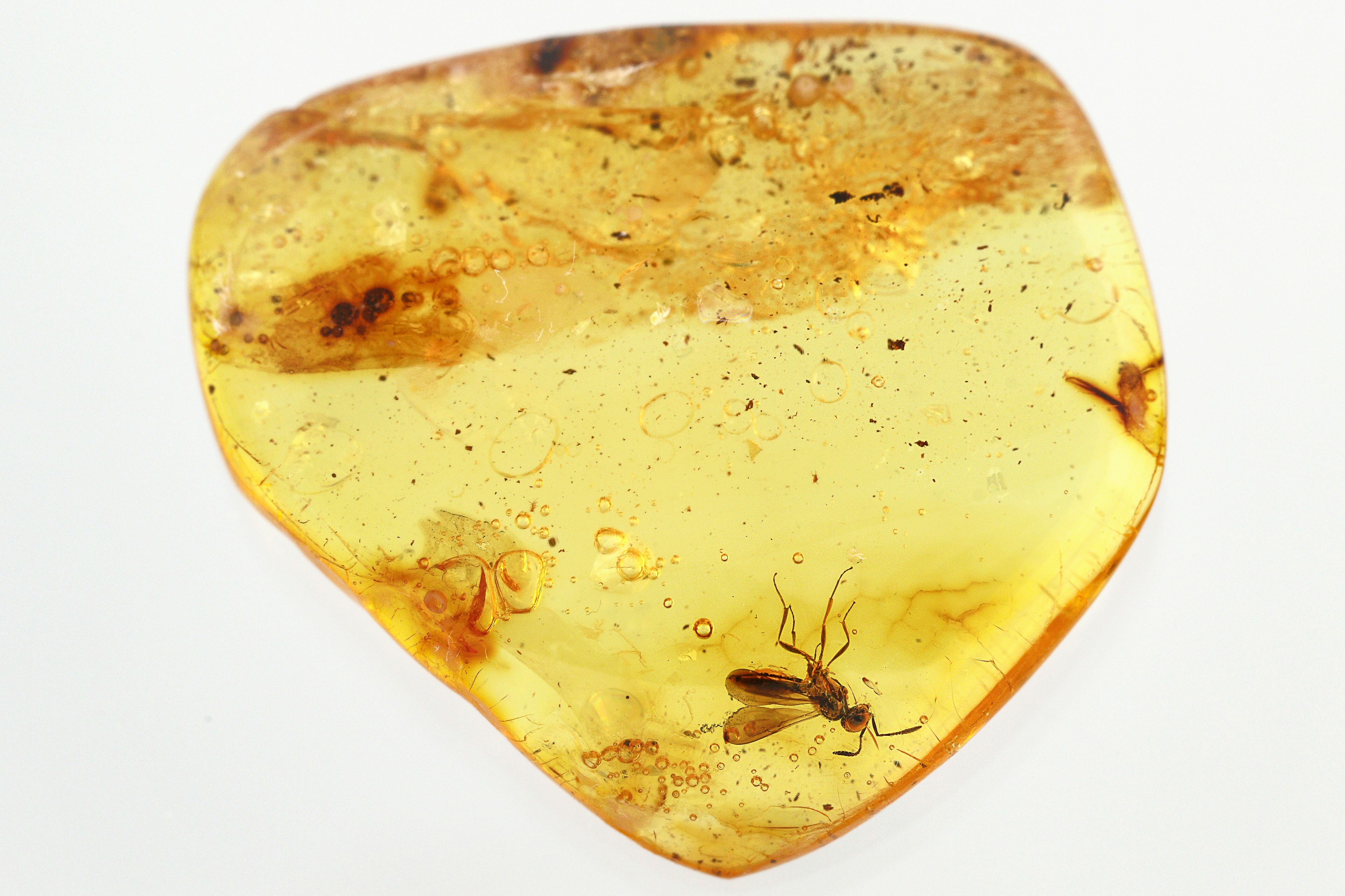 Buyer Beware: The market is flooded with fake amber, which is often plastics with insects embedded in it. The insect inclusions in amber are almost always tiny. Larger insects are able to struggle free and are not preserved. If you see something that looks too good to be true, it often is. Make sure to buy from a reputable dealer.