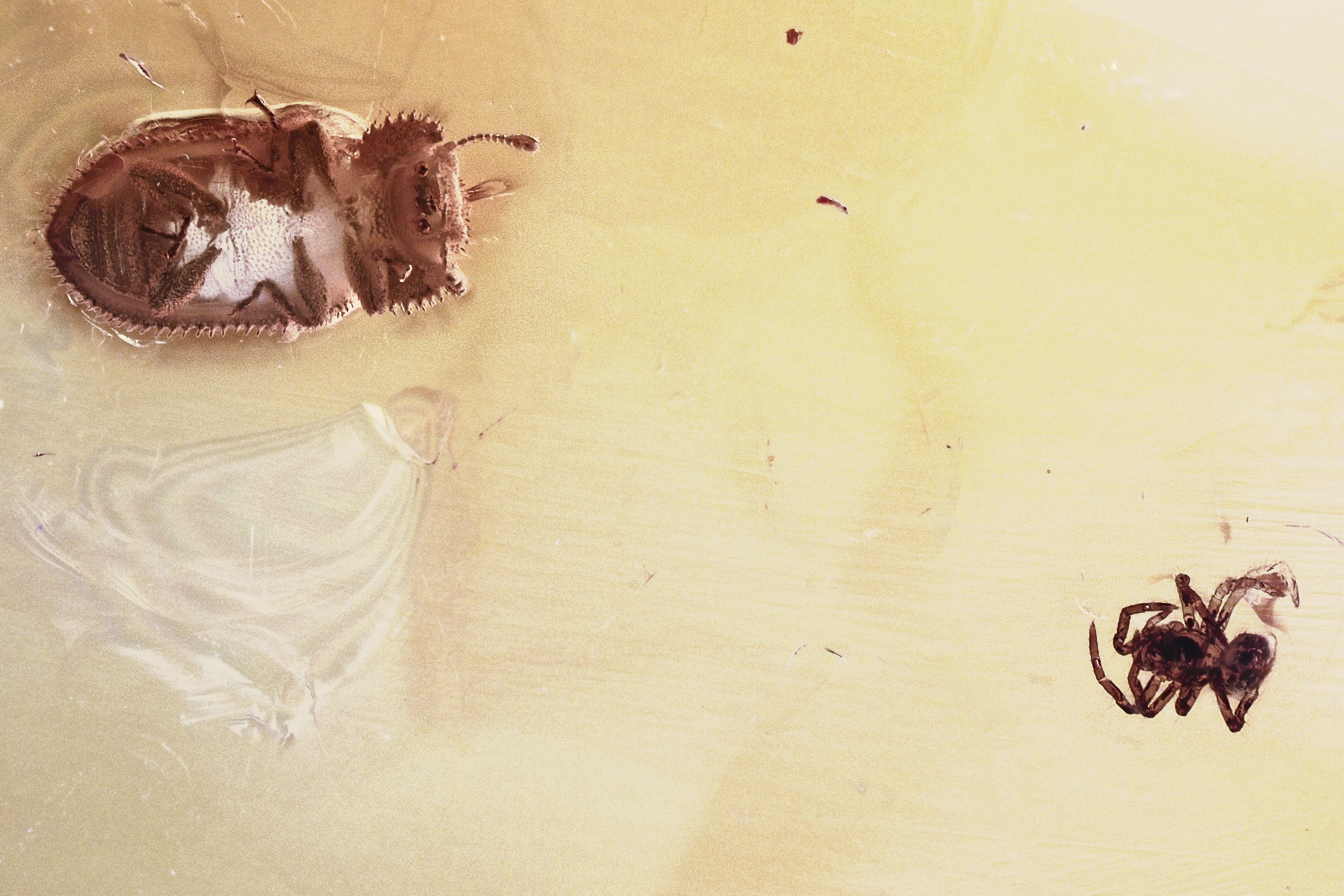 Detailed Fossil Spider and Ironclad Beetle in Baltic Amber