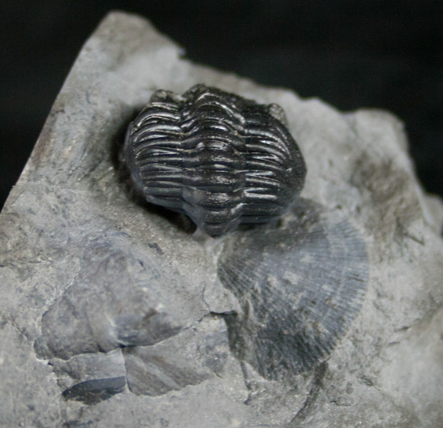 Shale of the Penn-Dixie, belonging to the Hamilton Group, contains shallow, tropical Devonian sea fauna. Along a creek in scenic western New York, Eldredgeops are often found enrolled. Prone specimens are a particularly prized treasure.