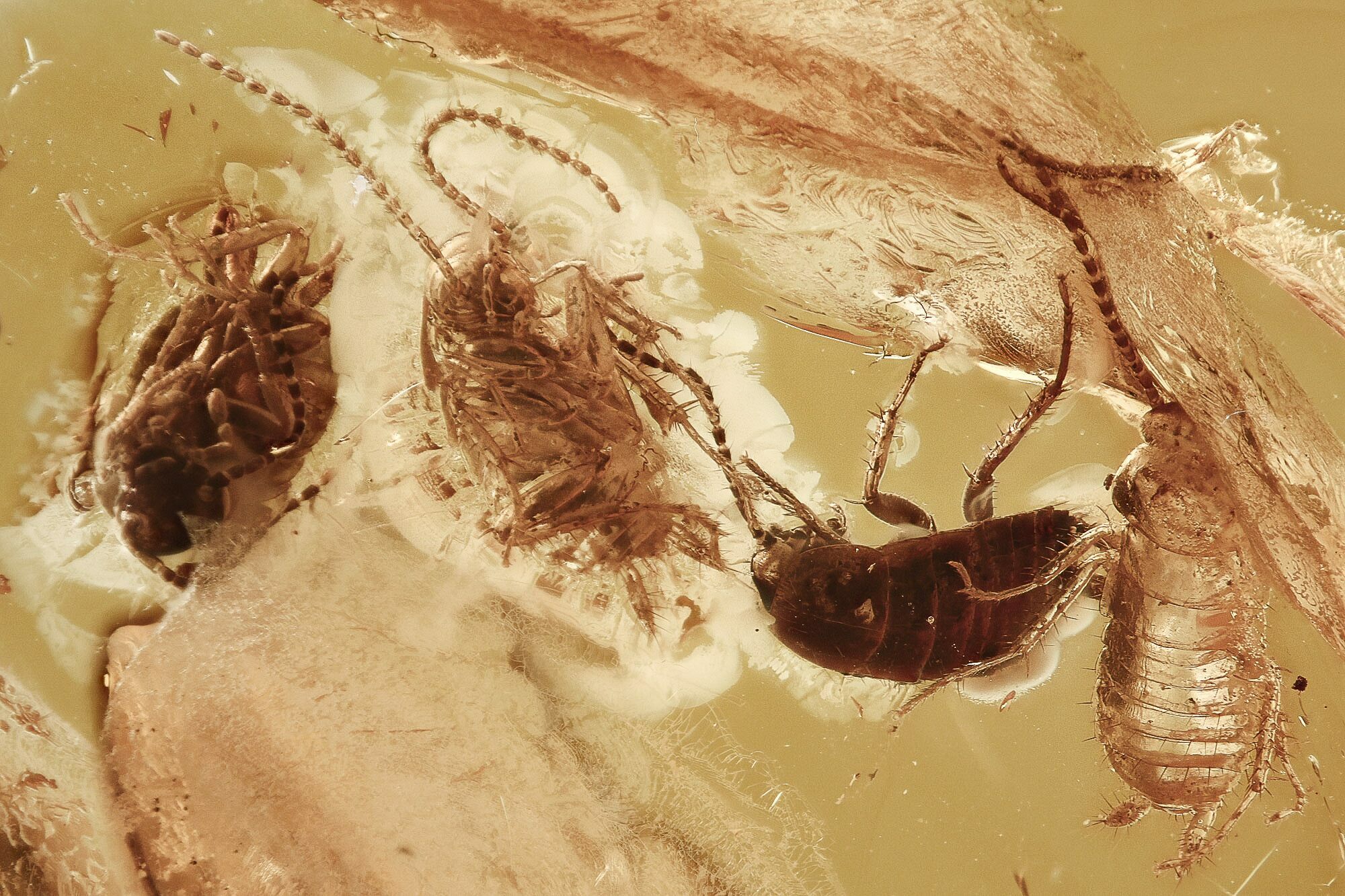 Five Detailed Fossil Cockroaches (Blattodea) In Baltic Amber - Rare!