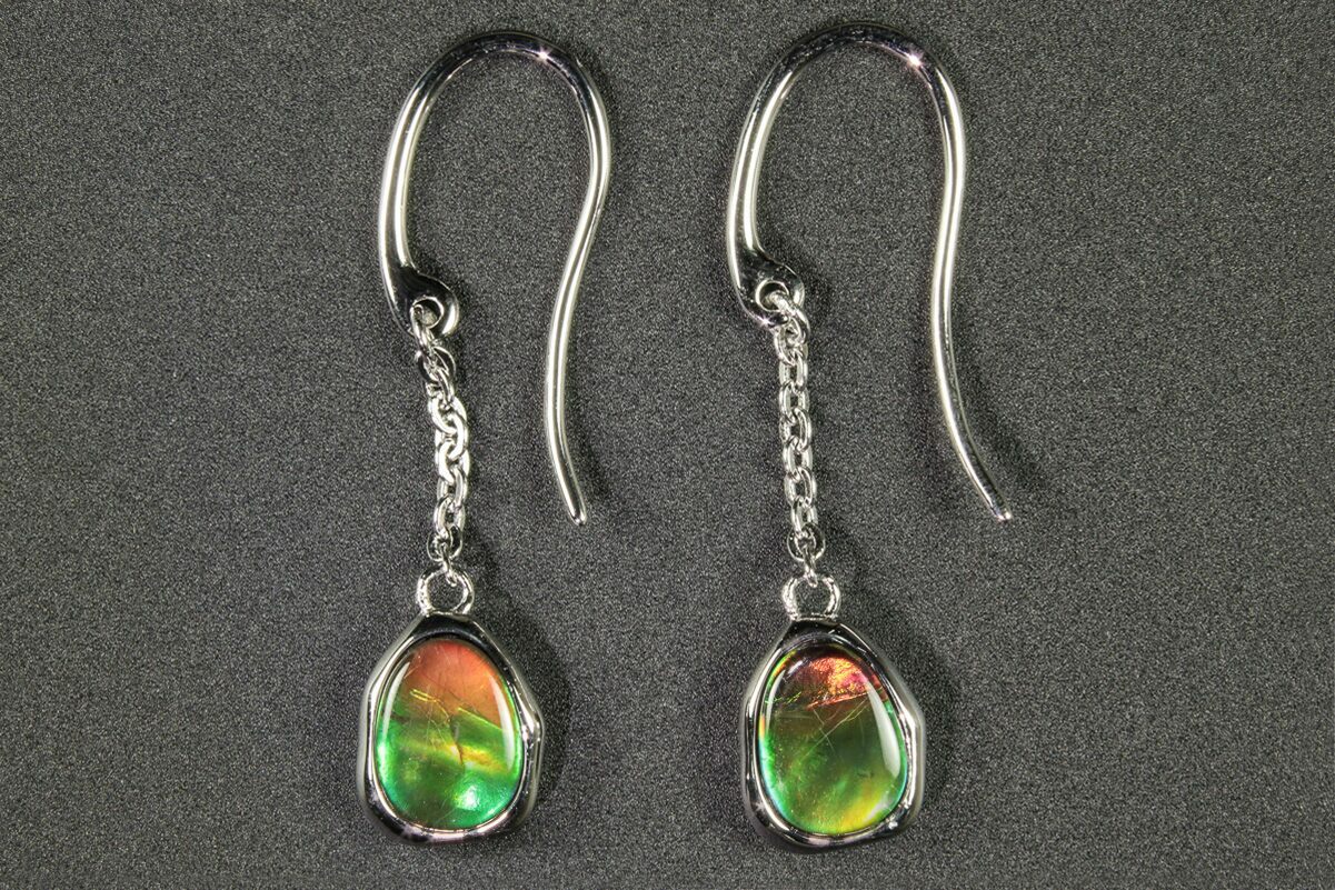 Flashy Ammolite (Fossil Ammonite Shell) Earrings with Sterling Silver