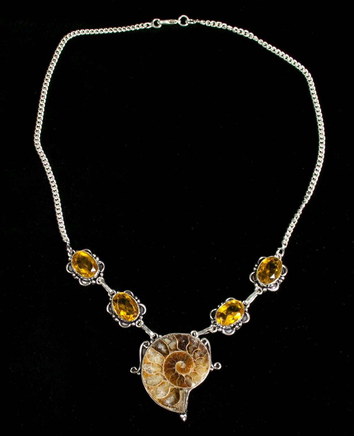 Fossil Ammonite Necklace With Citrine