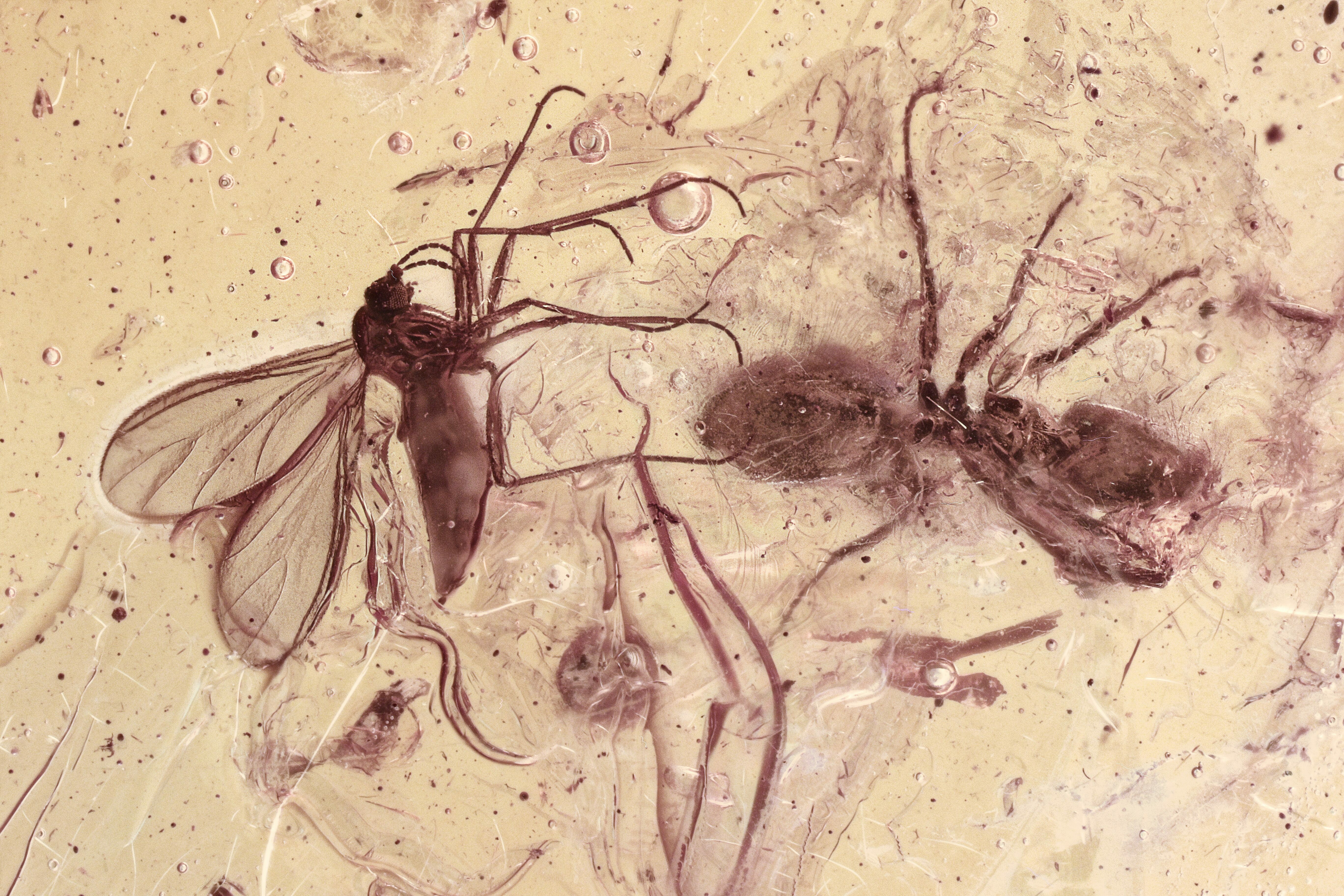 Fossil Ant and Dark-Winged Fungus Gnat In Baltic Amber