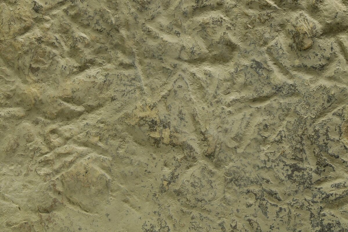 The site also preserves fascinating behavioral evidence, including feeding traces that capture birds actively foraging in the soft sediment. Some traces consist of a series of scoops made as birds “shoveled” through the mud with their beaks in search of insects, while others show U-shaped channels formed by the tip of a beak dragged through the sediment as a bird walked backward while feeding. In addition to bird activity, the horizon contains ancient insect traces such as Cochlichnus, interpreted as nematode trails that appear as delicate, squiggly lines, as well as tiny round footprints likely made by flies or beetles, often found within trample zones. Even non-biological ichnofossils are preserved, including round, uniform raindrop impressions that fell during the early Eocene and splash droplets created by birds running or hopping through shallow water. Together, these traces create a vivid snapshot of a dynamic lakeshore ecosystem frozen in time.