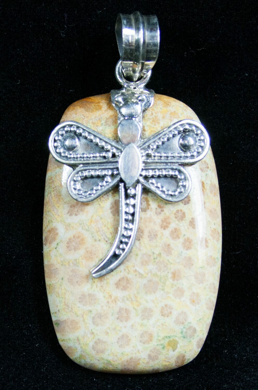 Fossil Coral Pendant With Dragonfly