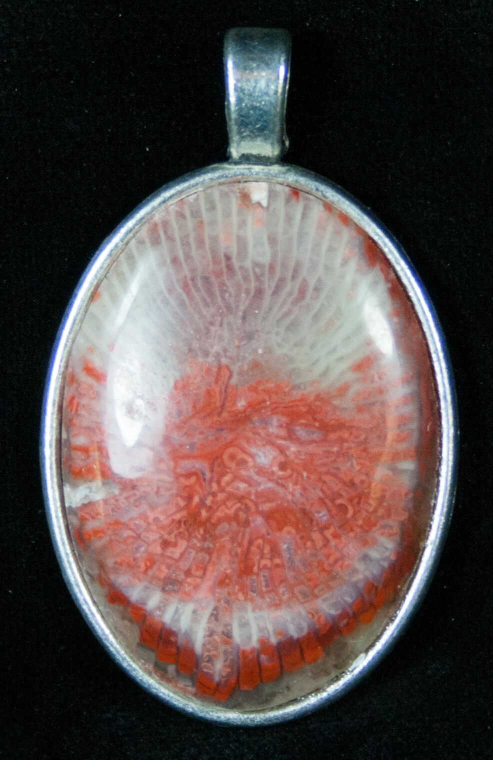 This is a stunning pendant, hand crafted in Utah from 300 million year old, red, agatized horn coral. The coral has been sliced and polished so that it's beautiful internal cell structure is displayed. This fossil horn coral is not actively being mined anymore so there isn't much of it remaining.