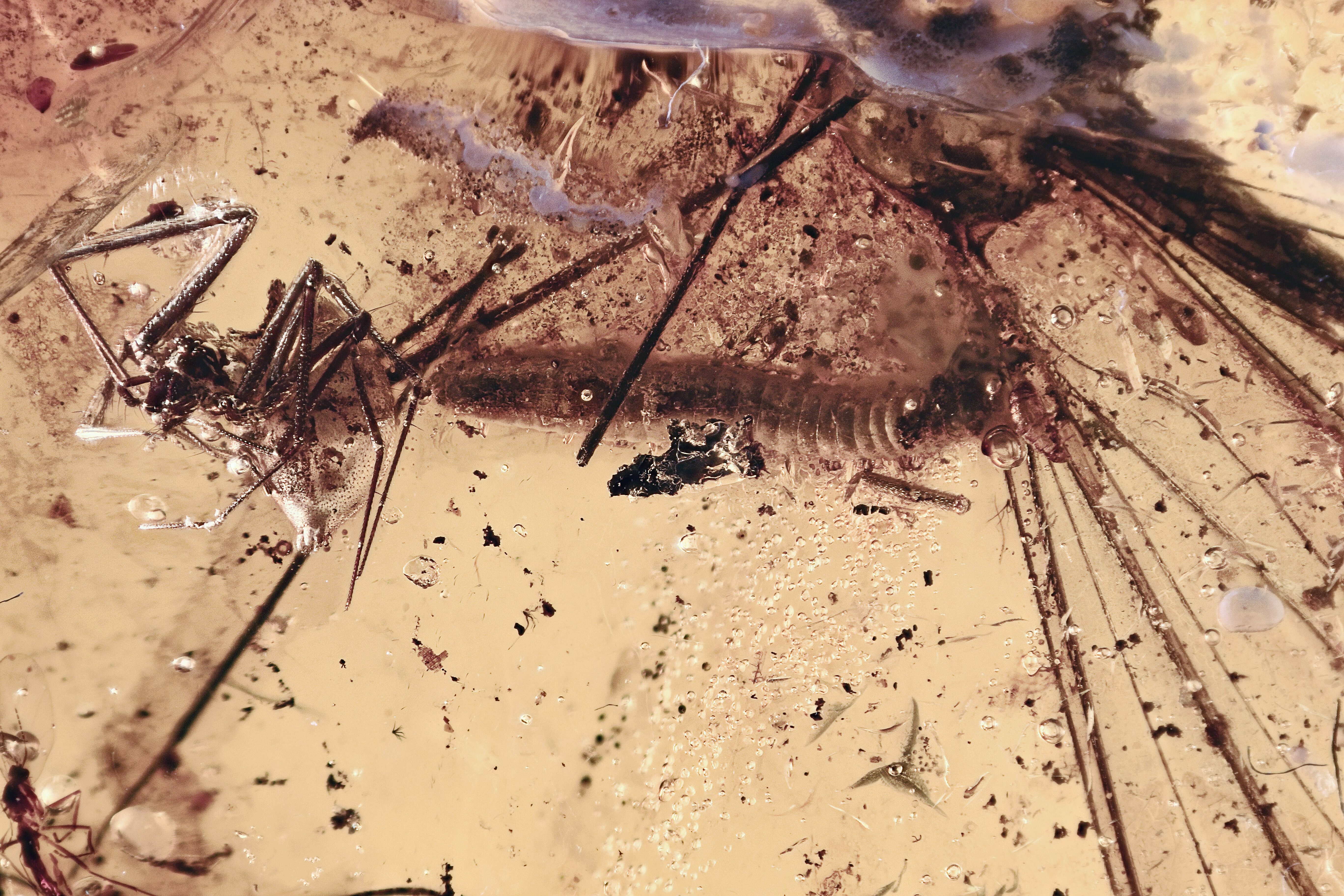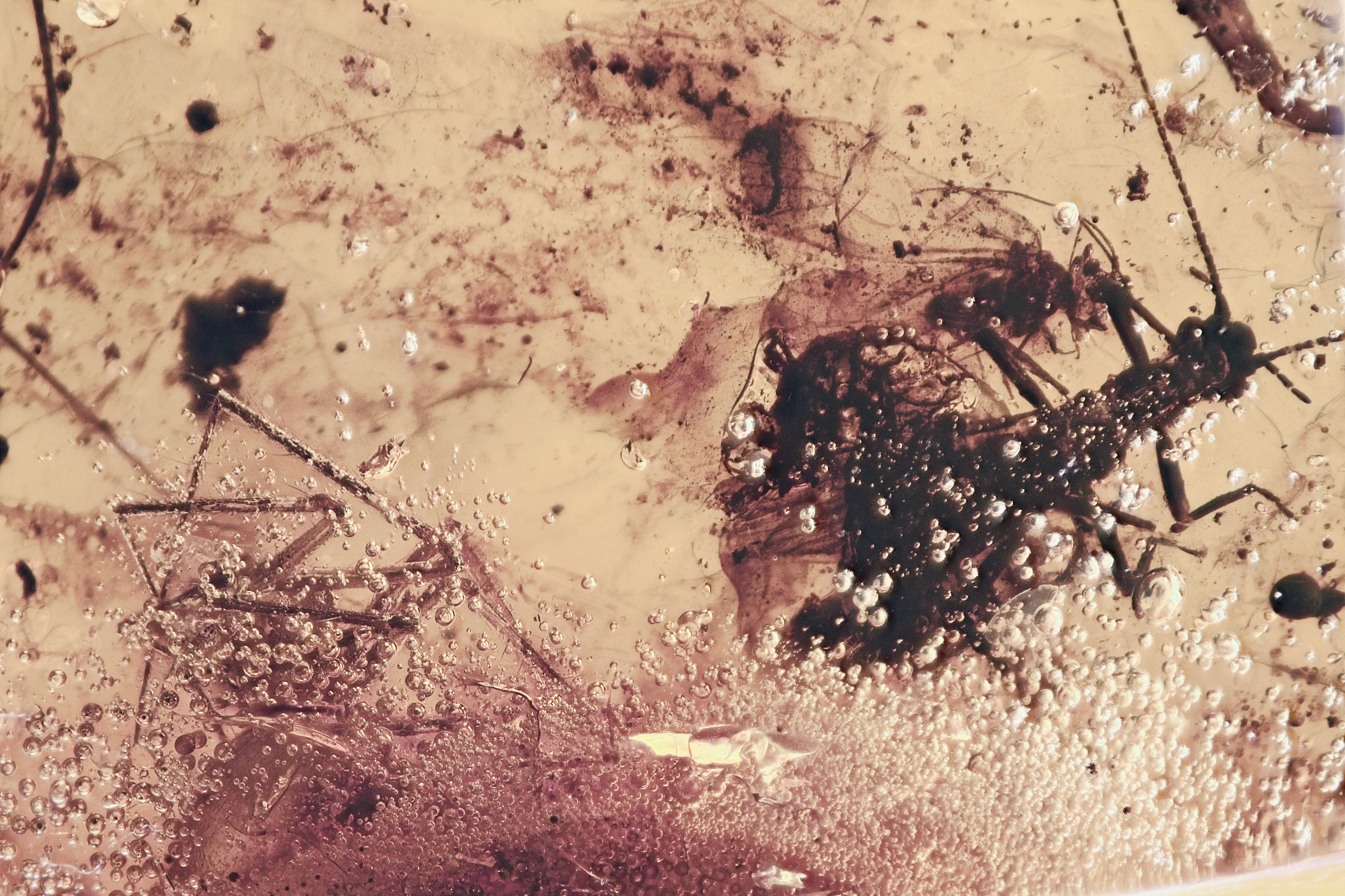 Fossil Spiders, Millipede, Cricket, Barklouse and More in Amber