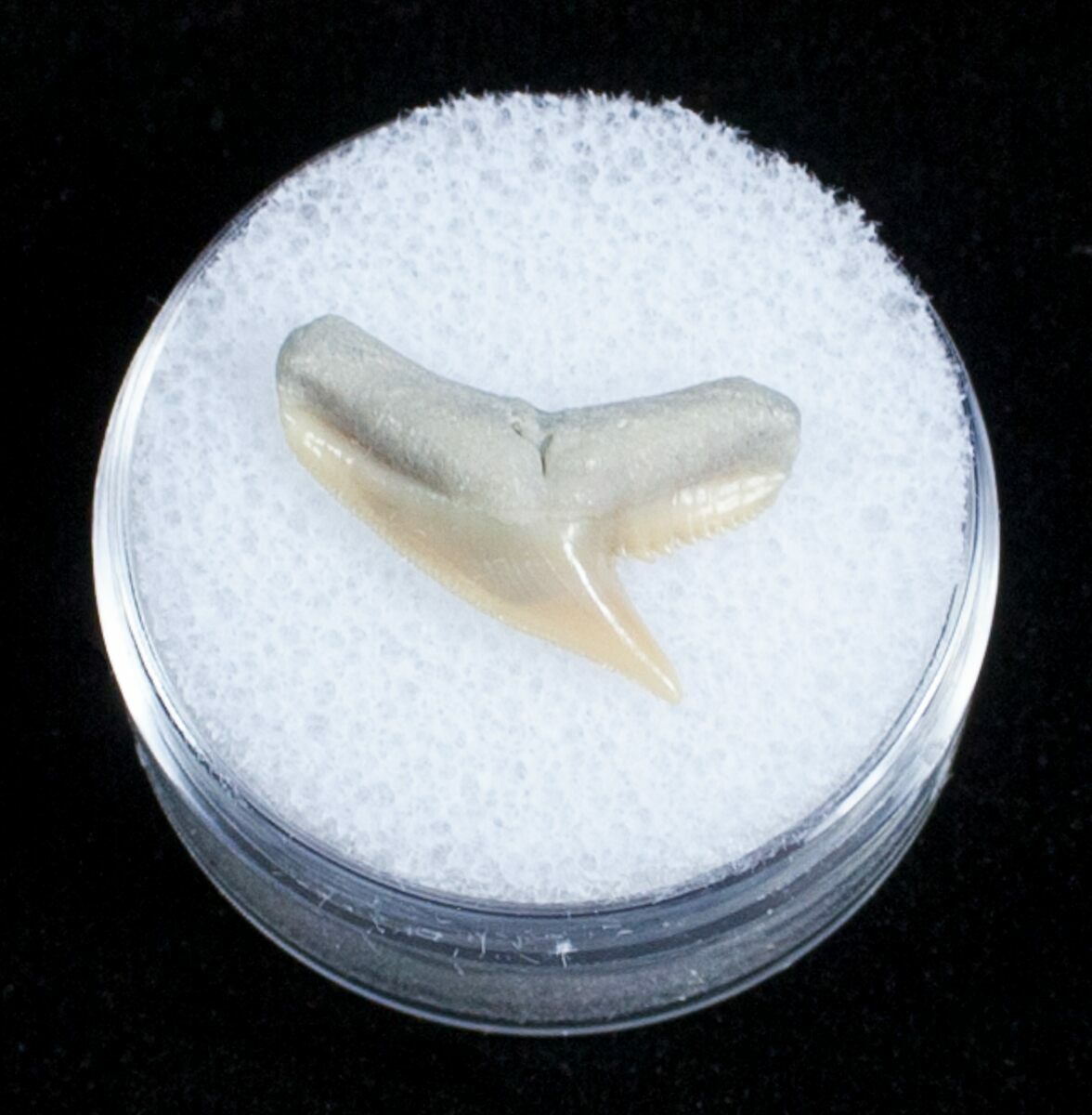 This is a tooth from the extinct tiger shark, Galeocerdo. It comes from the Lee Creek Phosphate Mine near Aurora, NC. This mine produces some of the most beautifully colored fossil teeth but unfortunately has been closed to collecting for several years now. This 5+ million year old tiger shark tooth comes in an acrylic display case.
